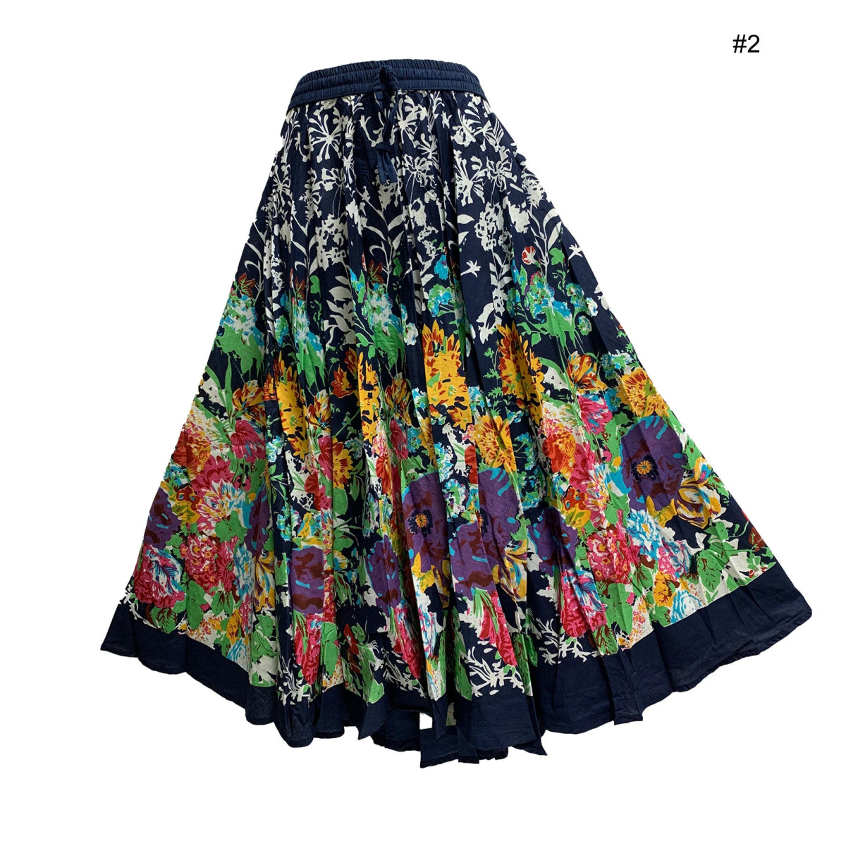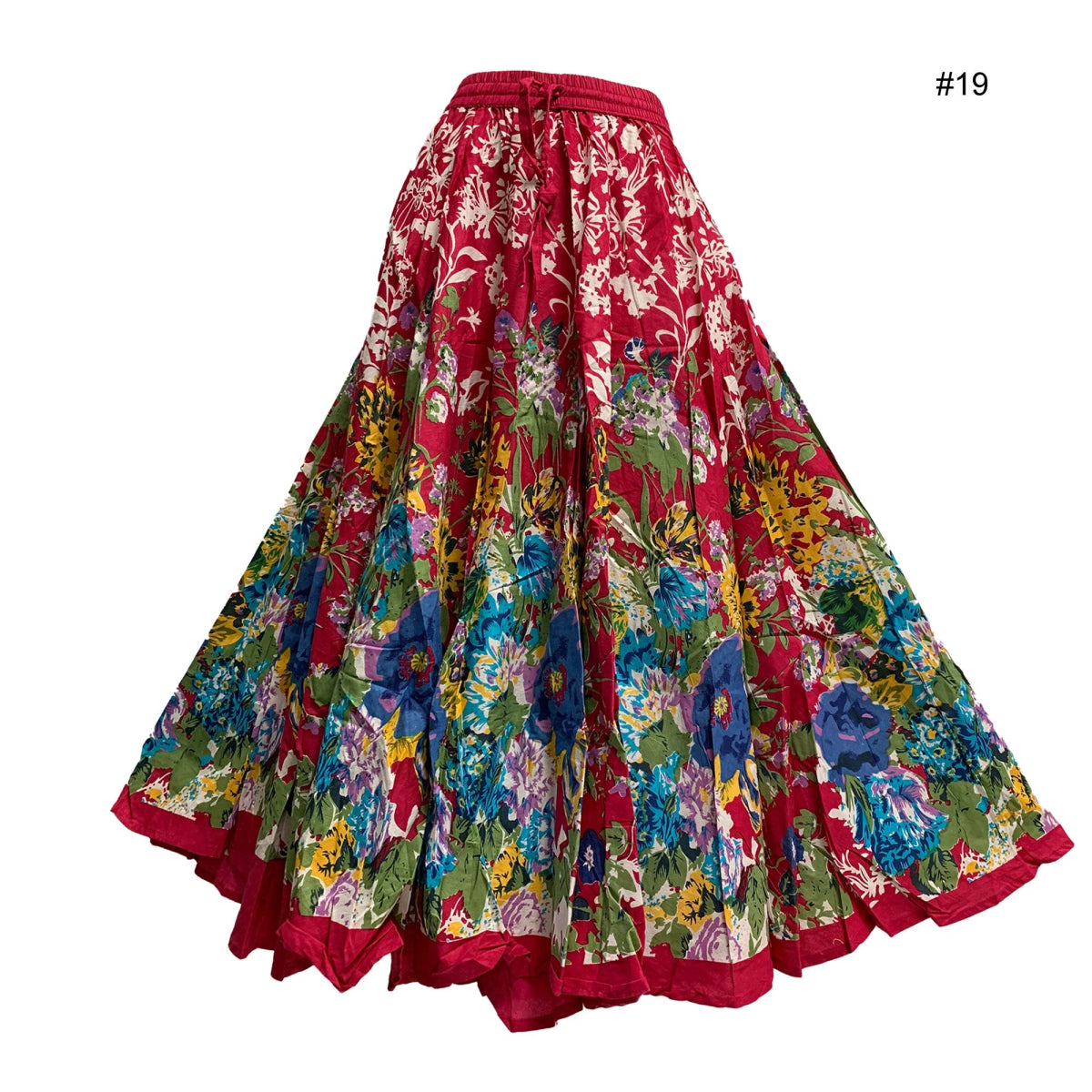 Women's Plus Size Ethnic Cotton Bohemian Flared Full Circle Umbrella Cut Long Midi Gypsy Skirt Renu