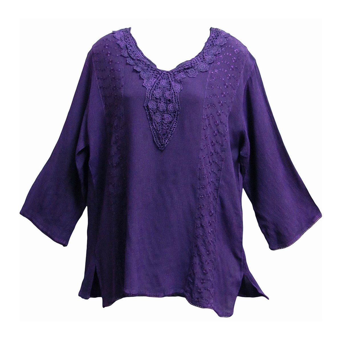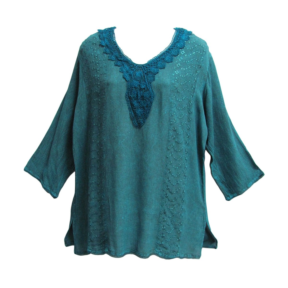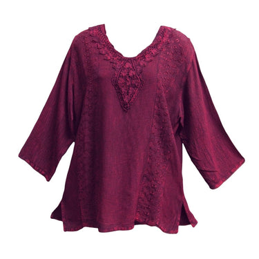 Women's Indian Bohemian Embroidered Stonewashed Vintage Style 3/4 Sleeve Lace Blouse