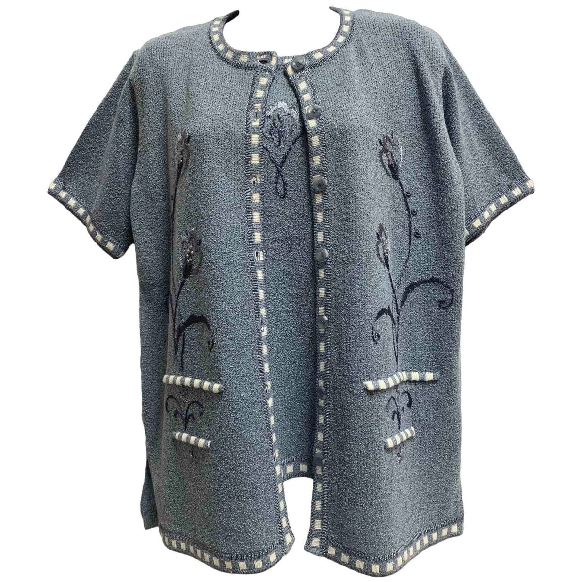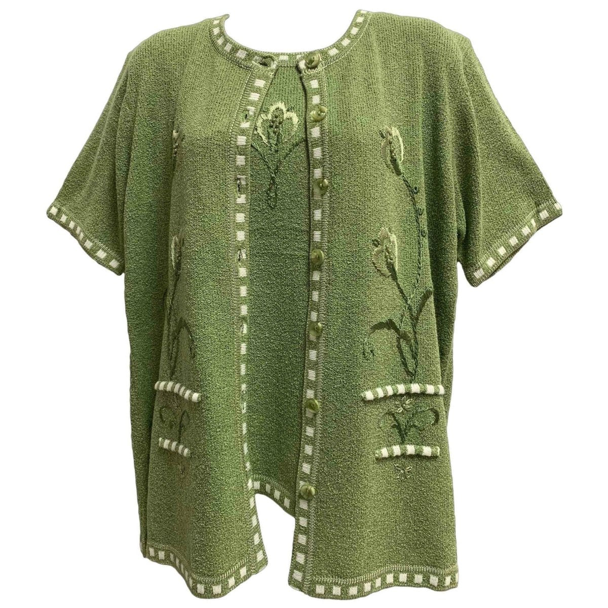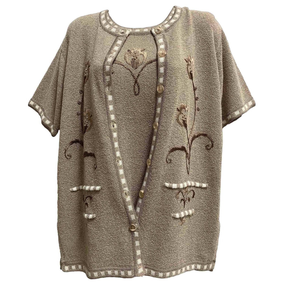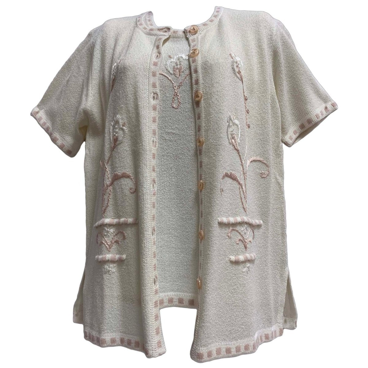 Women's Embroidered Short Sleeve Jacket & Blouse Clothing Set (2 Piece)