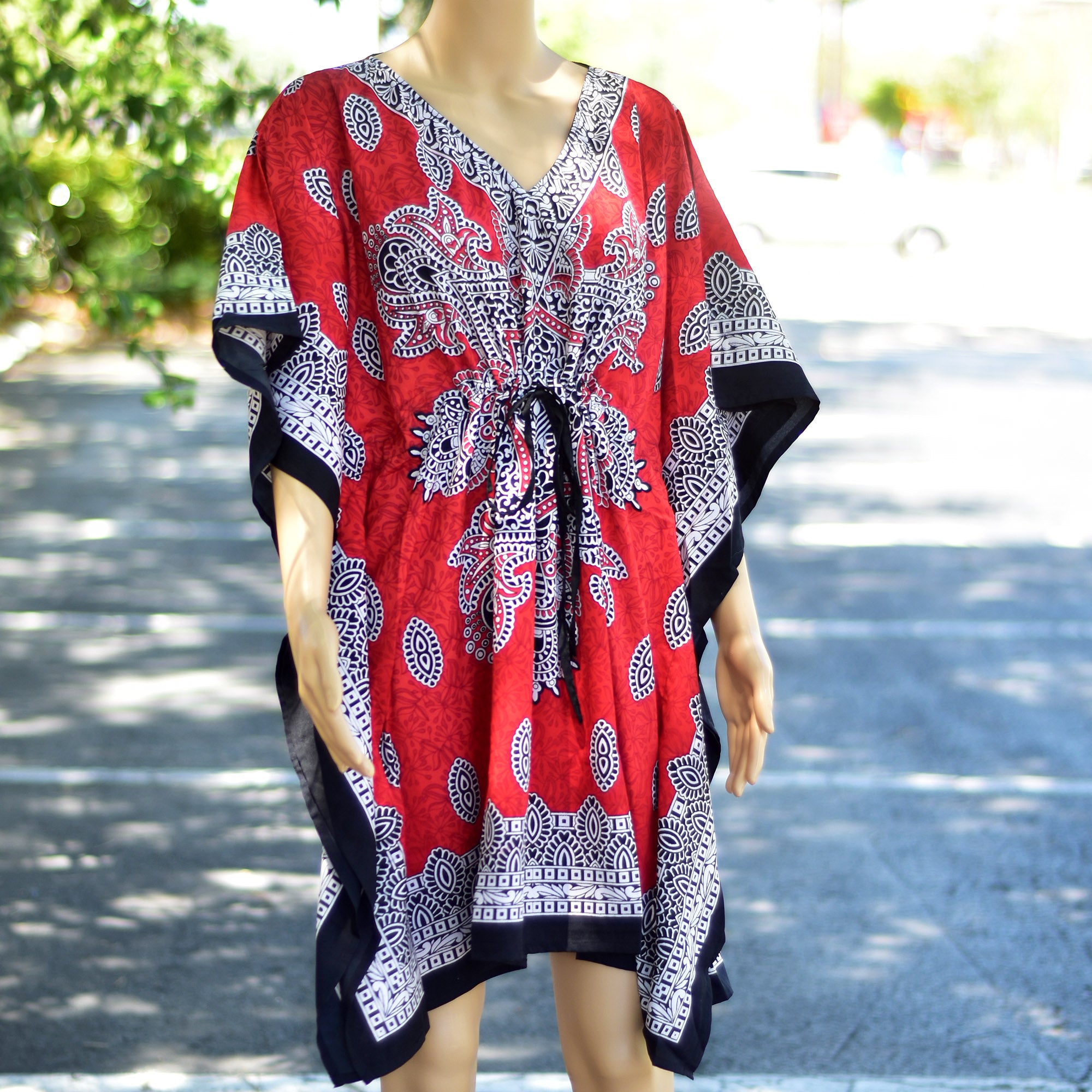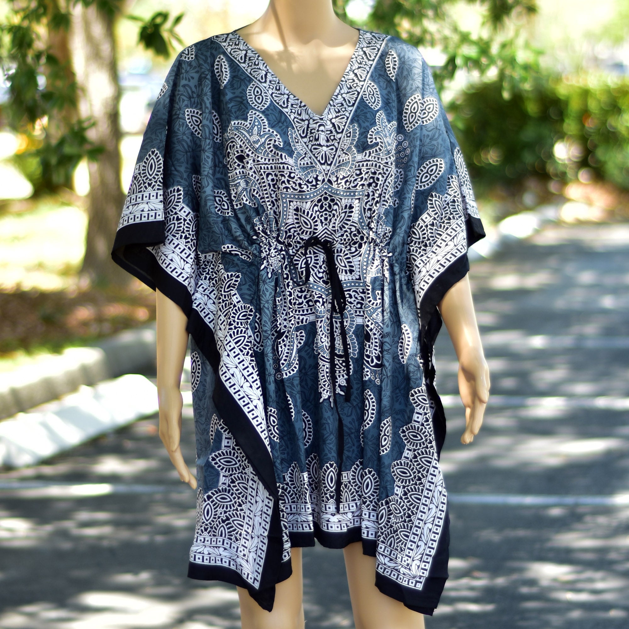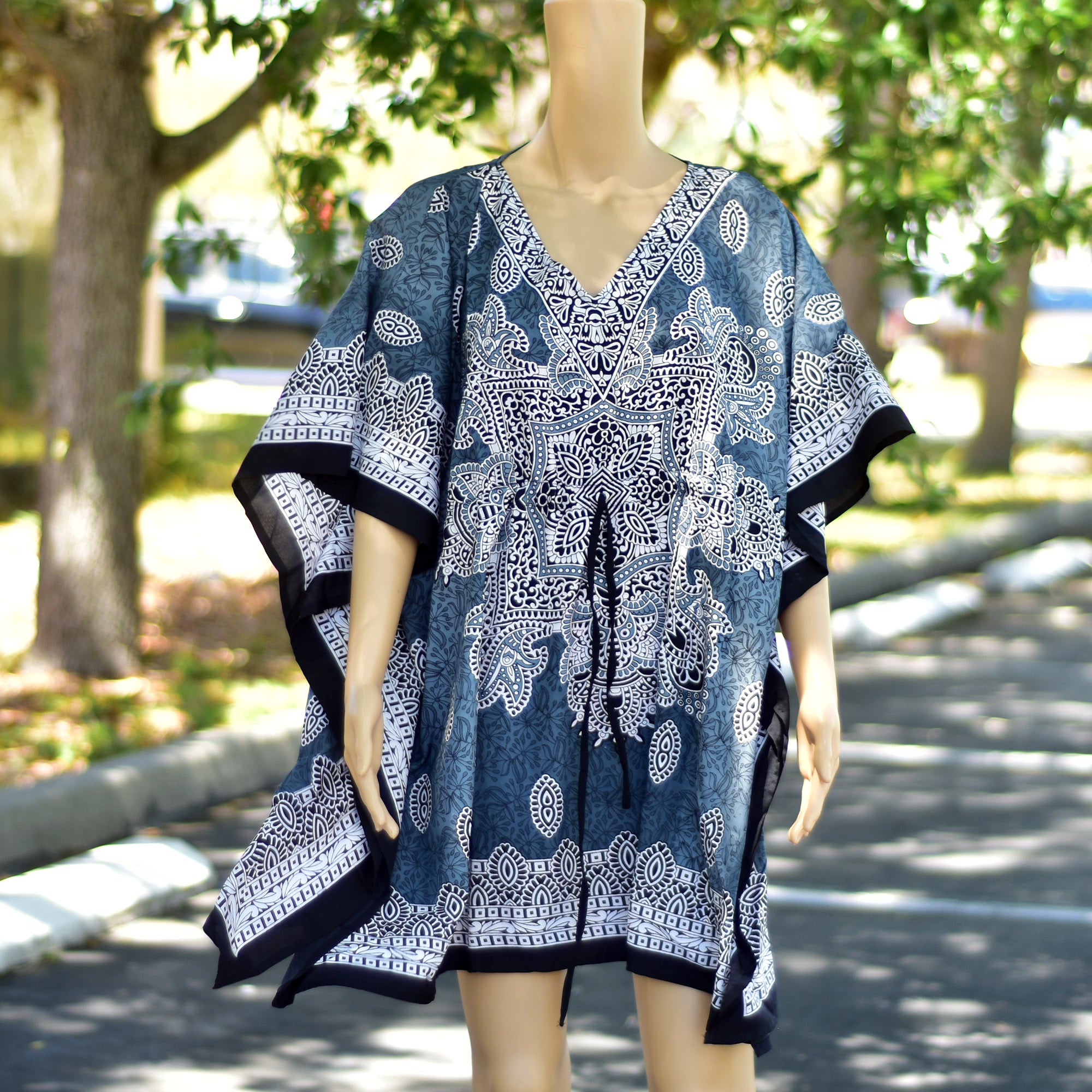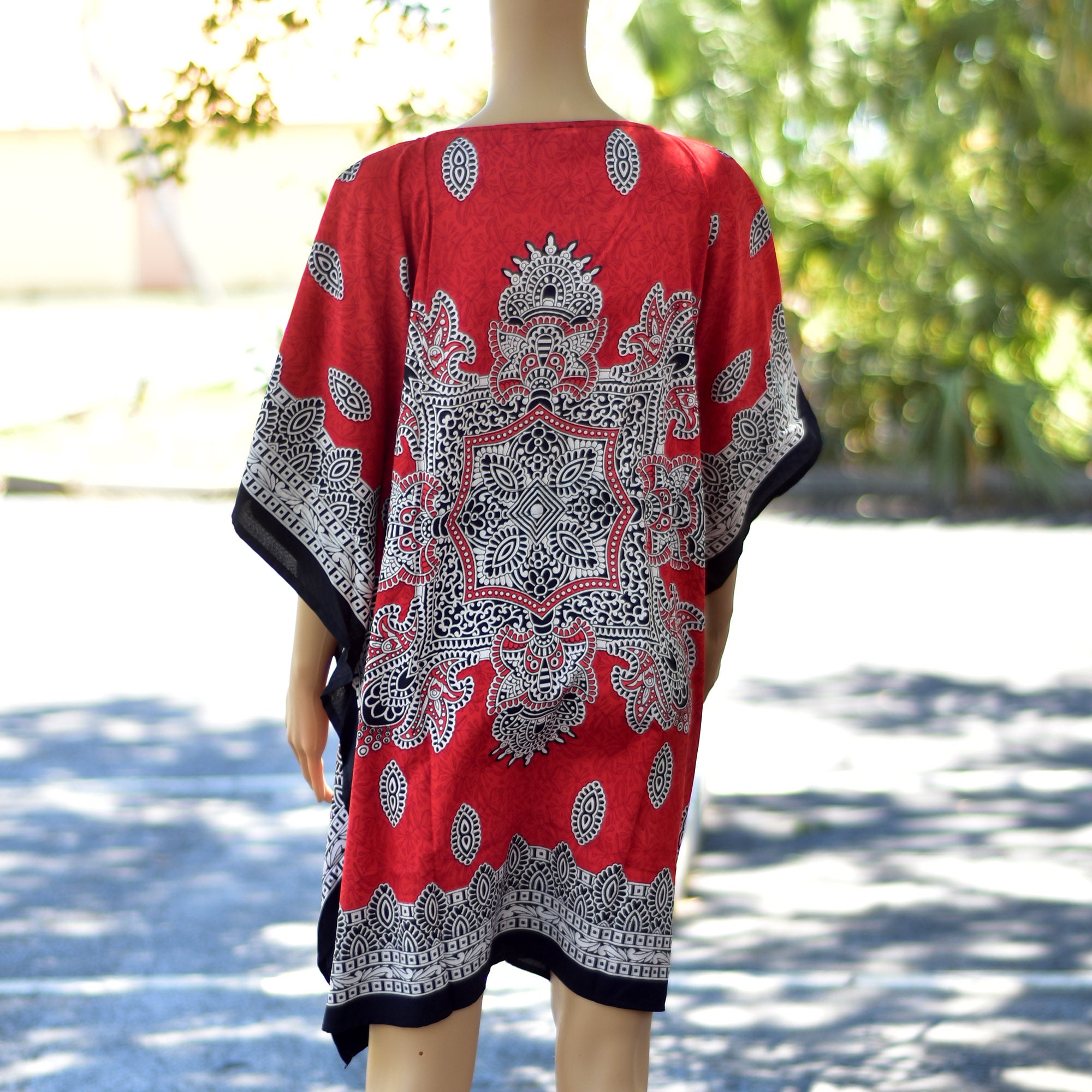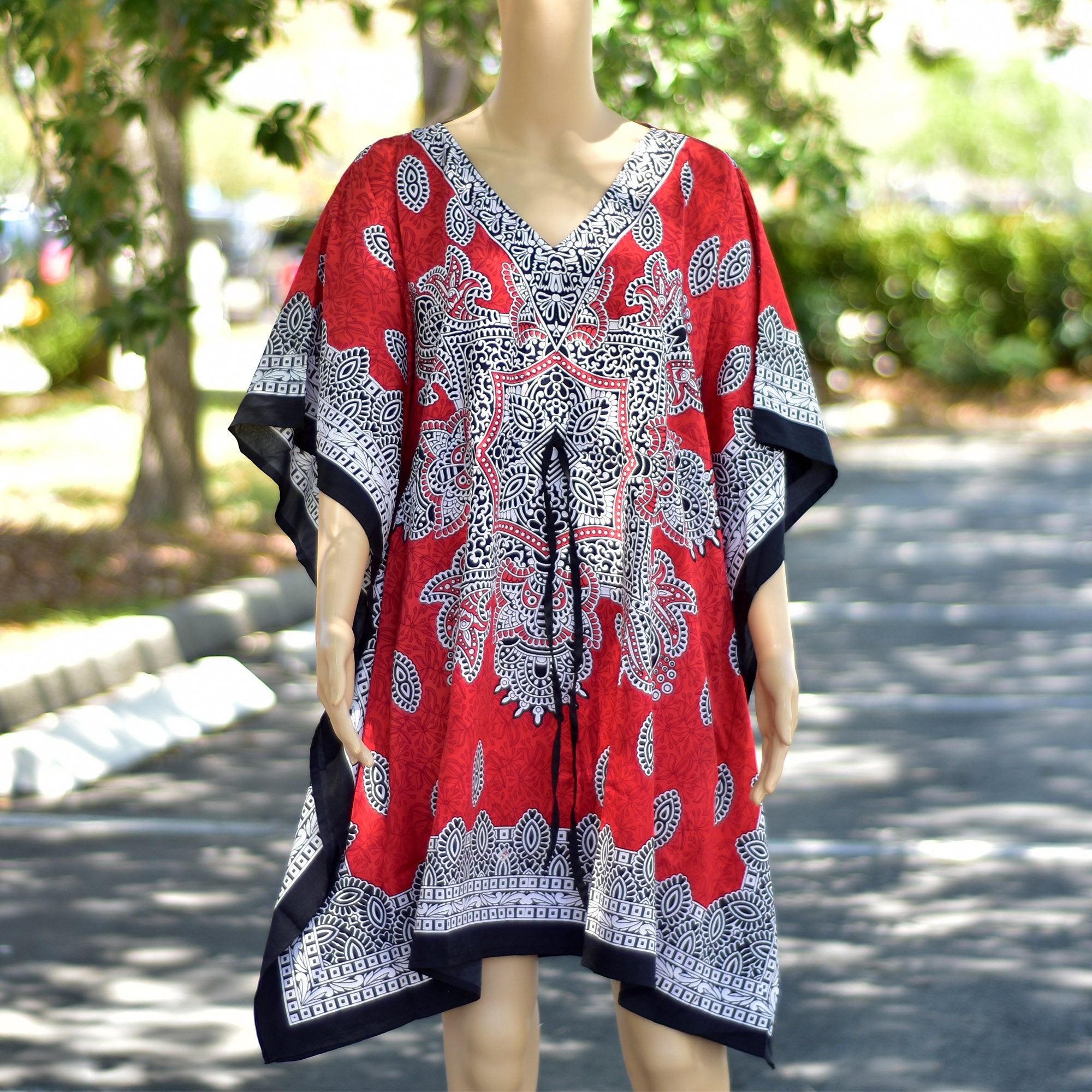Missy Plus Bohemian Gypsy Crepe Caftan Coverup Poncho paisley Tunic short Dress Mini jumper dress