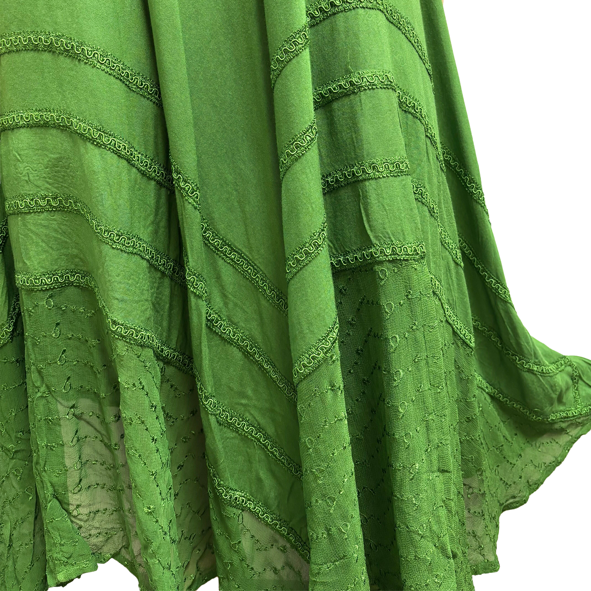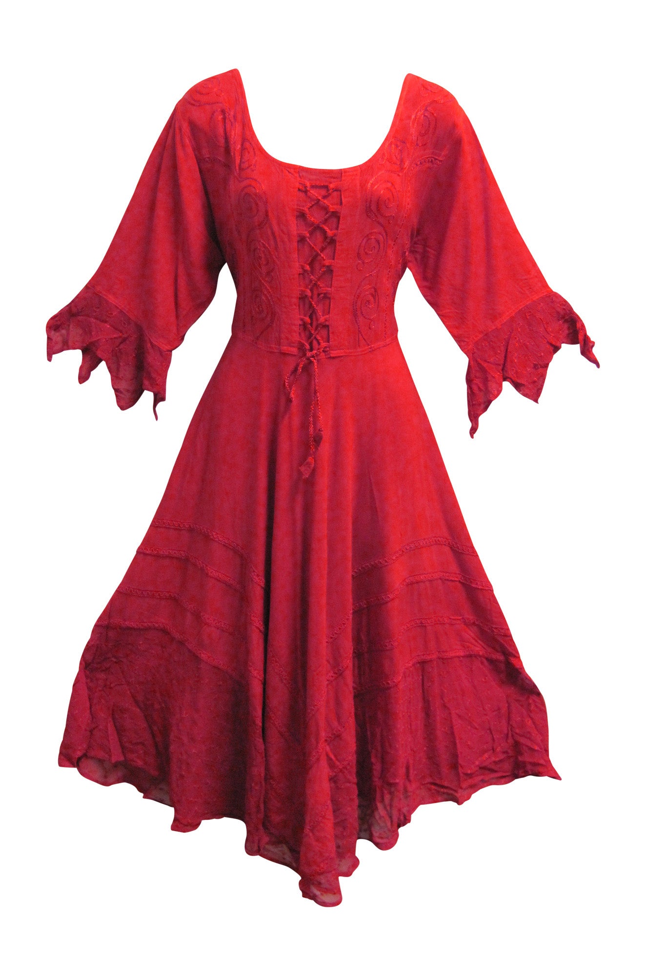 Available in rich solid colors and multicolored tie-dye variations, this dress is versatile enough for festivals, renaissance fairs, weddings, casual outings, or evening events. With its figure-flattering cut and one-size fit up to 1X, it’s the perfect choice for women who love bohemian fashion with a Celtic touch.