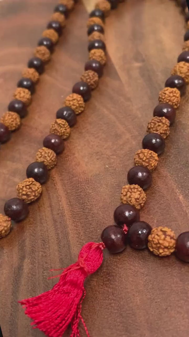 Discover inner peace and spiritual harmony with our Handmade 108 Count Rudraksha & Red Sandalwood Bead Japa Mala Prayer Yoga Meditation Necklace. This beautiful mala necklace combines the powerful energies of Rudraksha seeds and the calming properties of red sandalwood, making it an essential tool for meditation, prayer, and yoga practices.