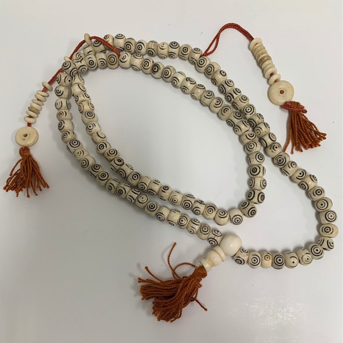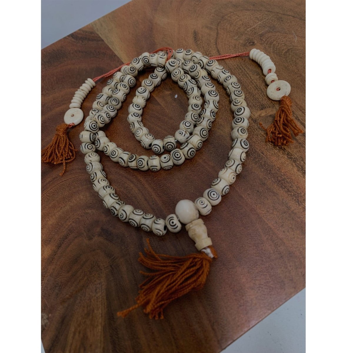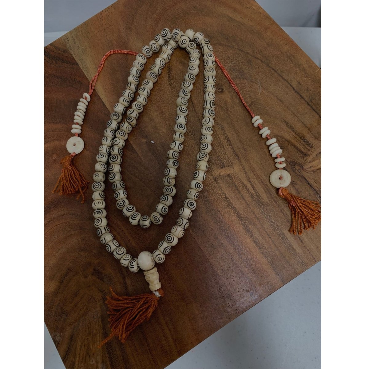 Vintage Handmade Batik Cow - Bone Eye 108 Bead Mala Necklace with Counters - Ambali Fashion Vintage Handmade Batik Cow - Bone Eye 108 Bead Mala Necklace with Counters - Ambali Fashion