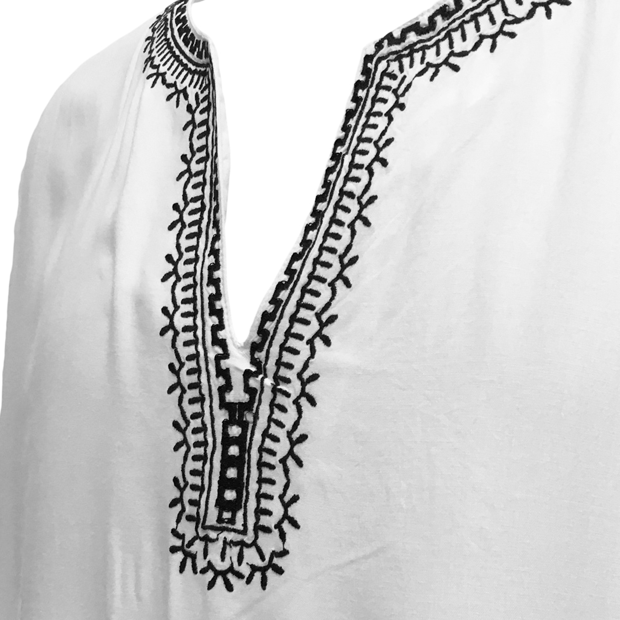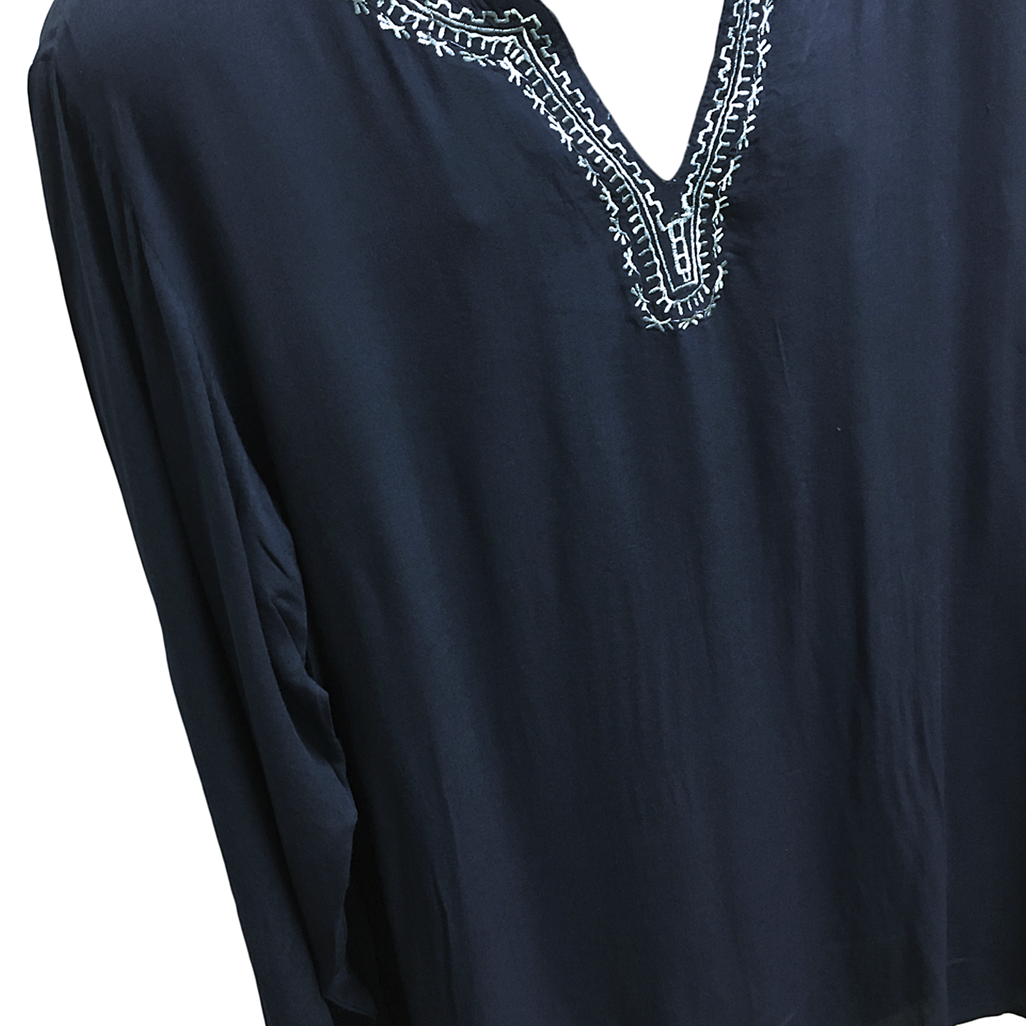 ✔️ Embroidered Neckline – Beautifully detailed embroidery around the V-neck gives it a distinctive, artisan finish.