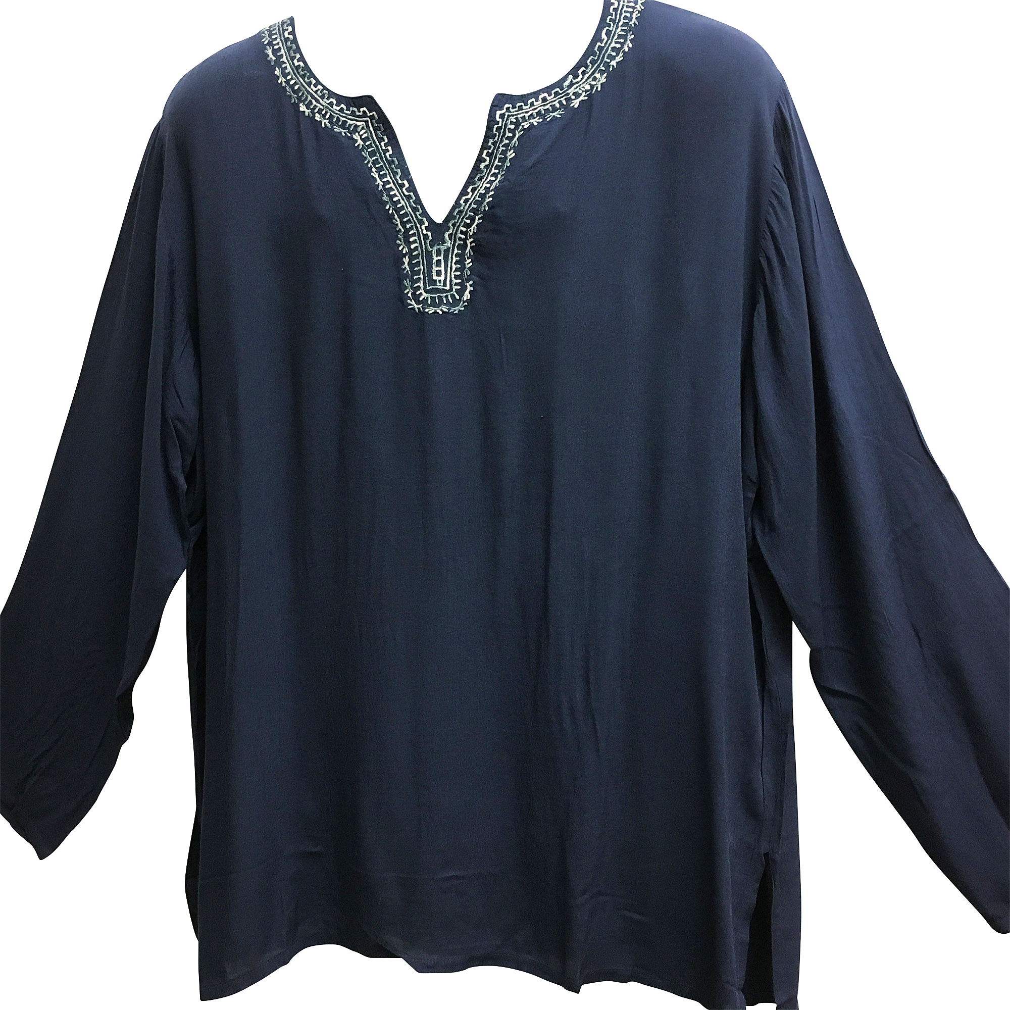 Men's Bohemian Sixties Style V-Neck Embroidered Loose Fit Tunic Shirt