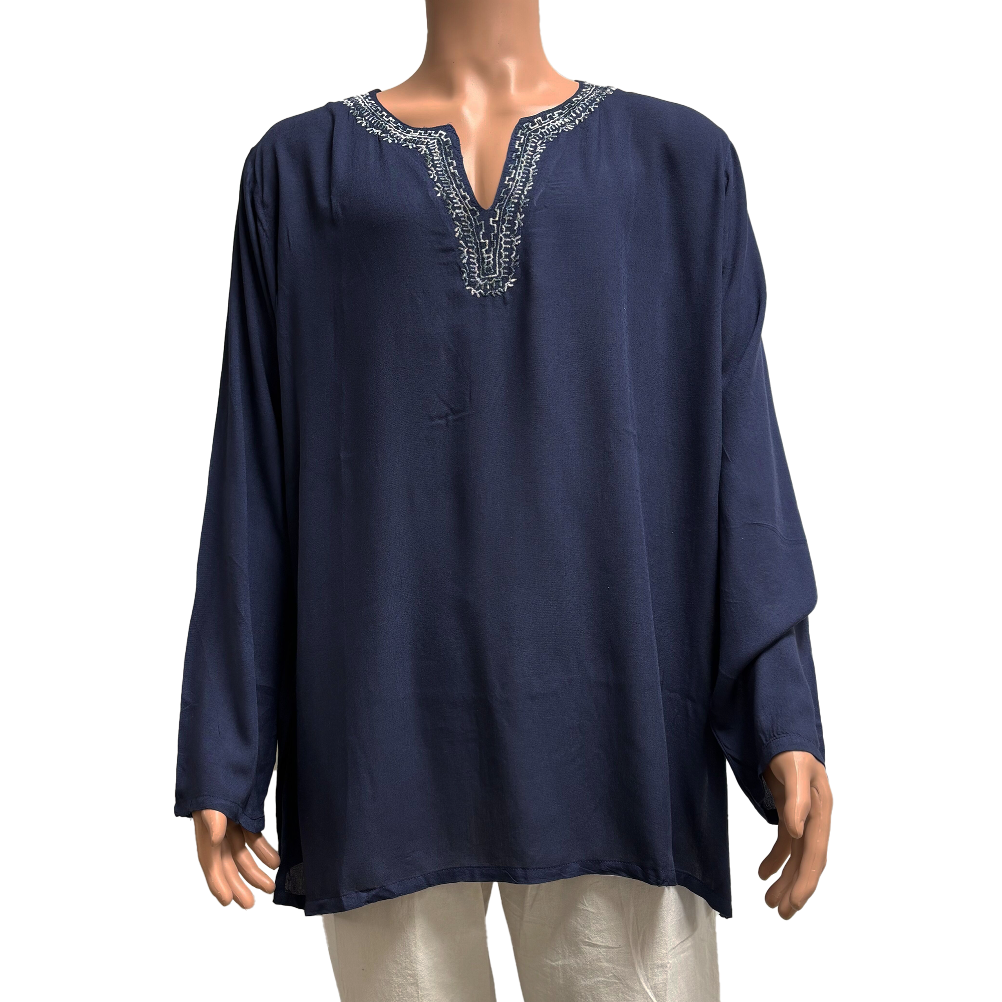 Made in India and crafted from a premium cotton-rayon blend (65% cotton / 35% rayon), this kurta offers a soft, cottony drape that flows beautifully on all body types – now available in both regular and plus sizes.