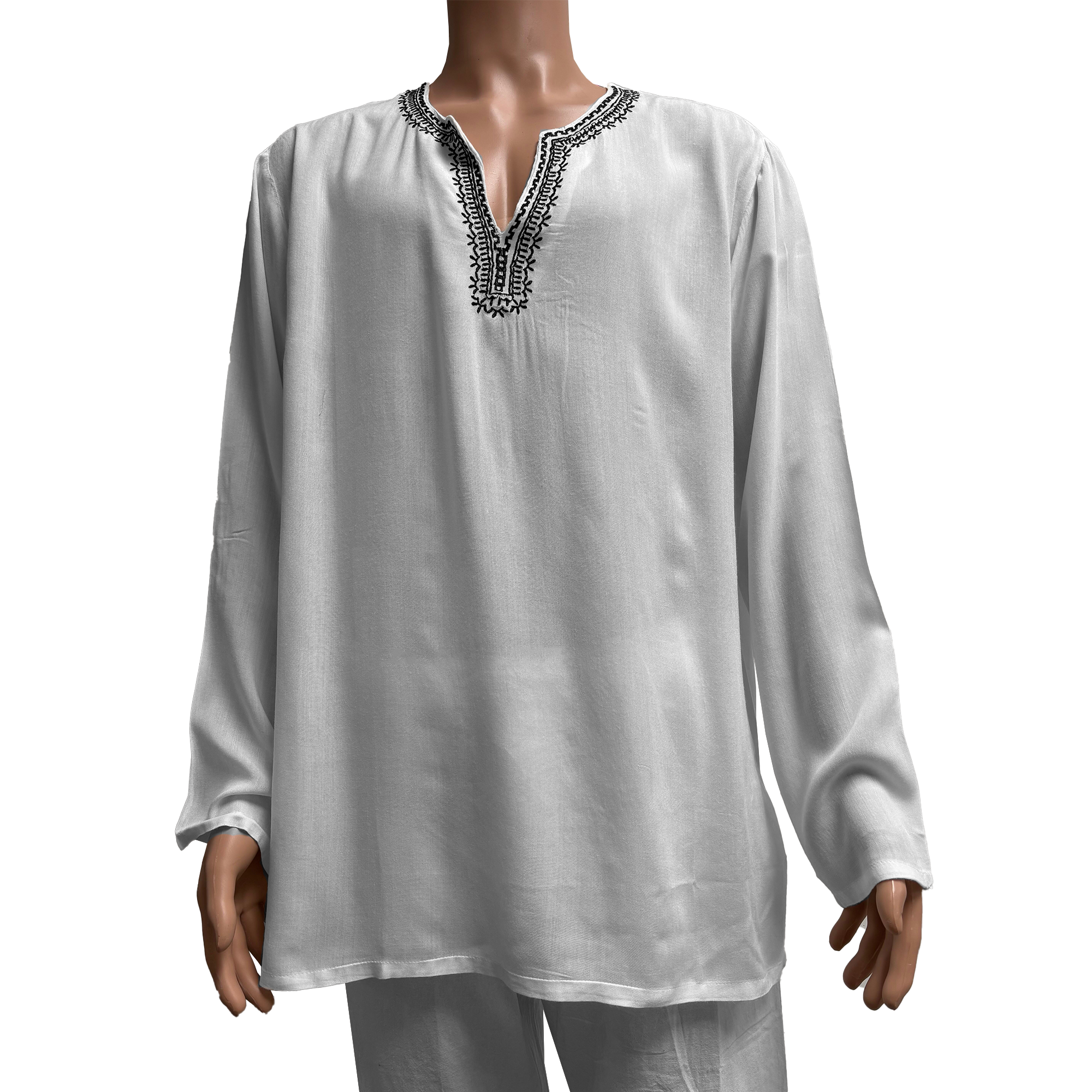 Men’s Bohemian Sixties V-Neck Embroidered Indian Kurta Tunic – Loose Fit, Long Sleeve Boho Shirt 🌿🧘♂️✨