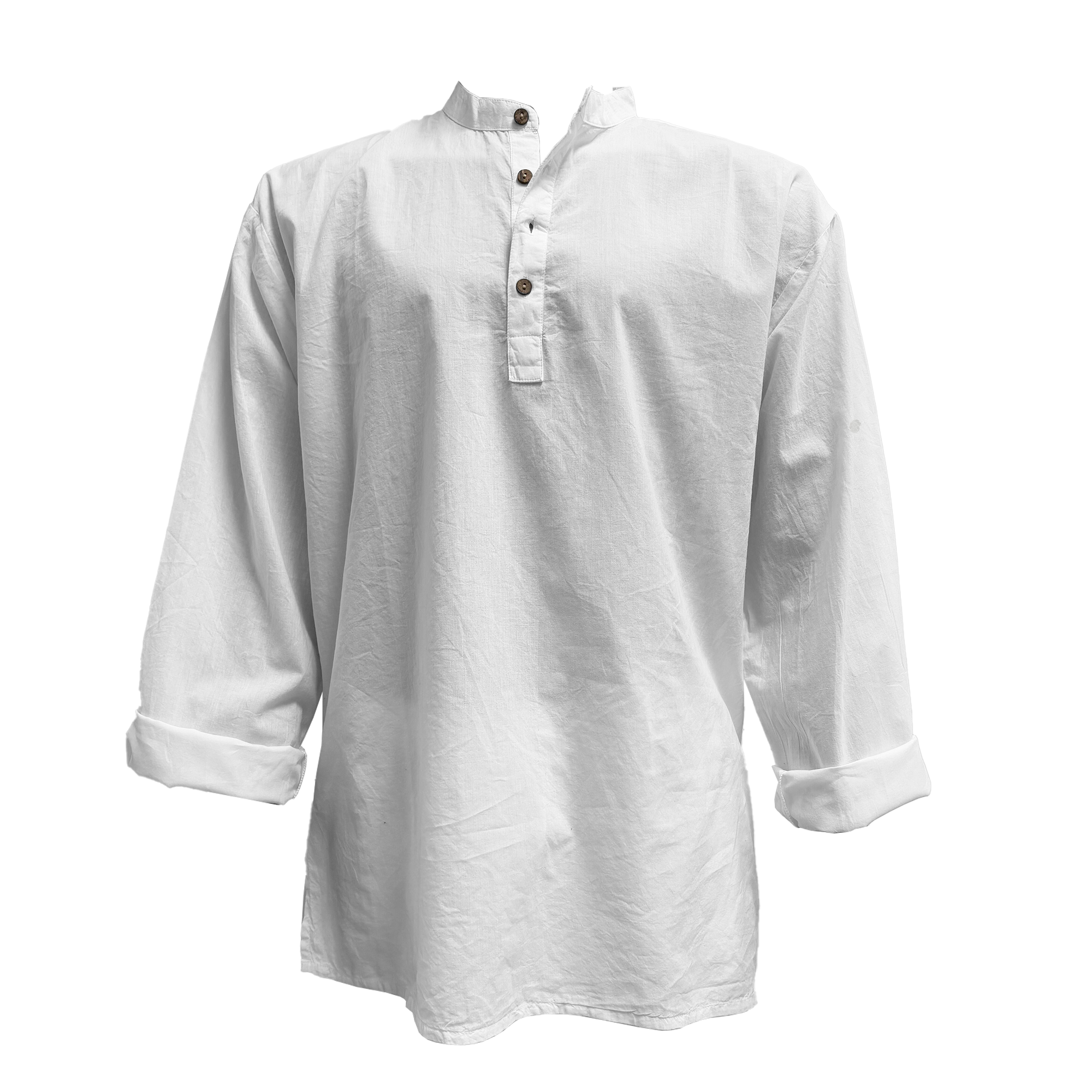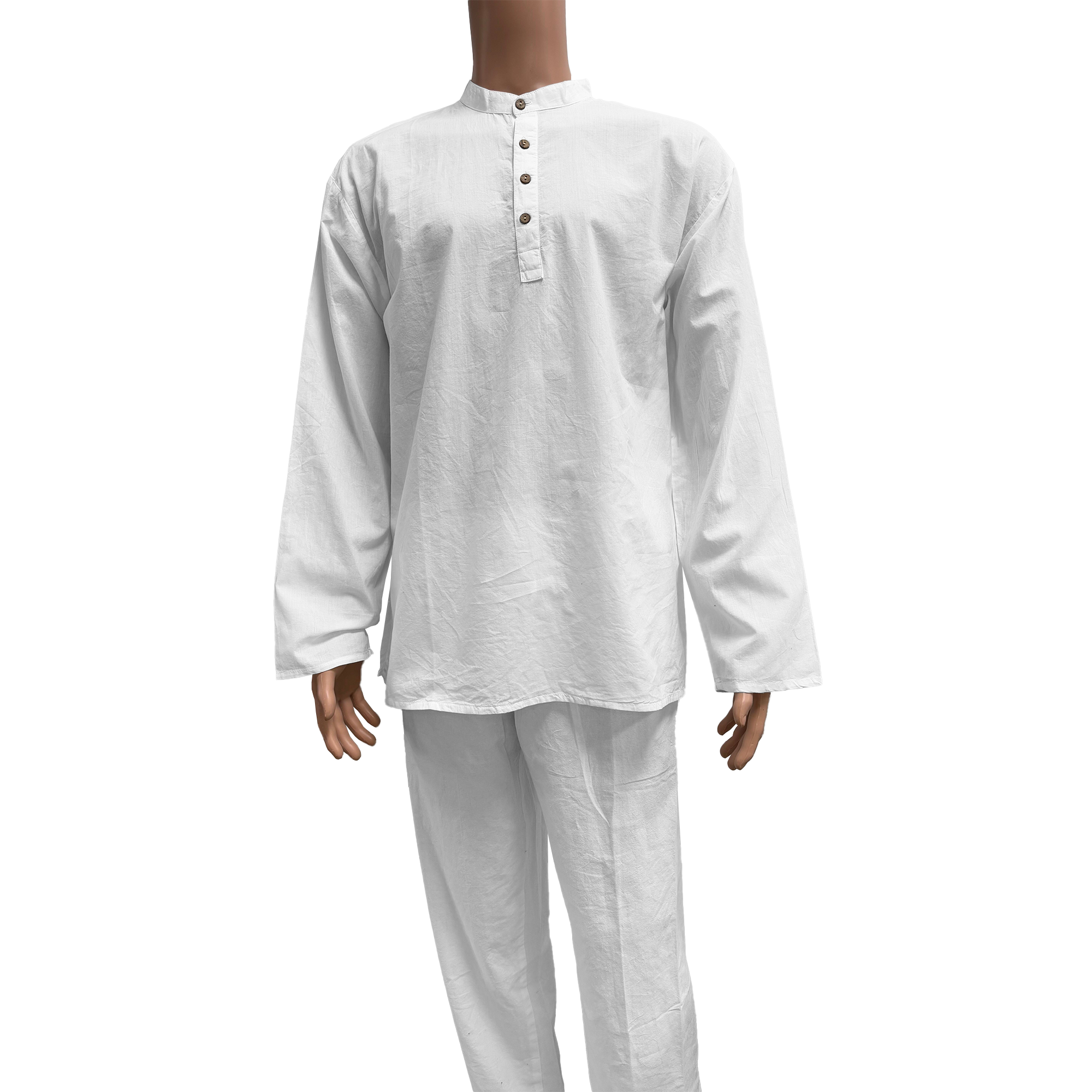 Men's Yoga Indian Gauze Cotton Mandarin Collar Long Sleeve White Kurta Boho Tunic Shirt