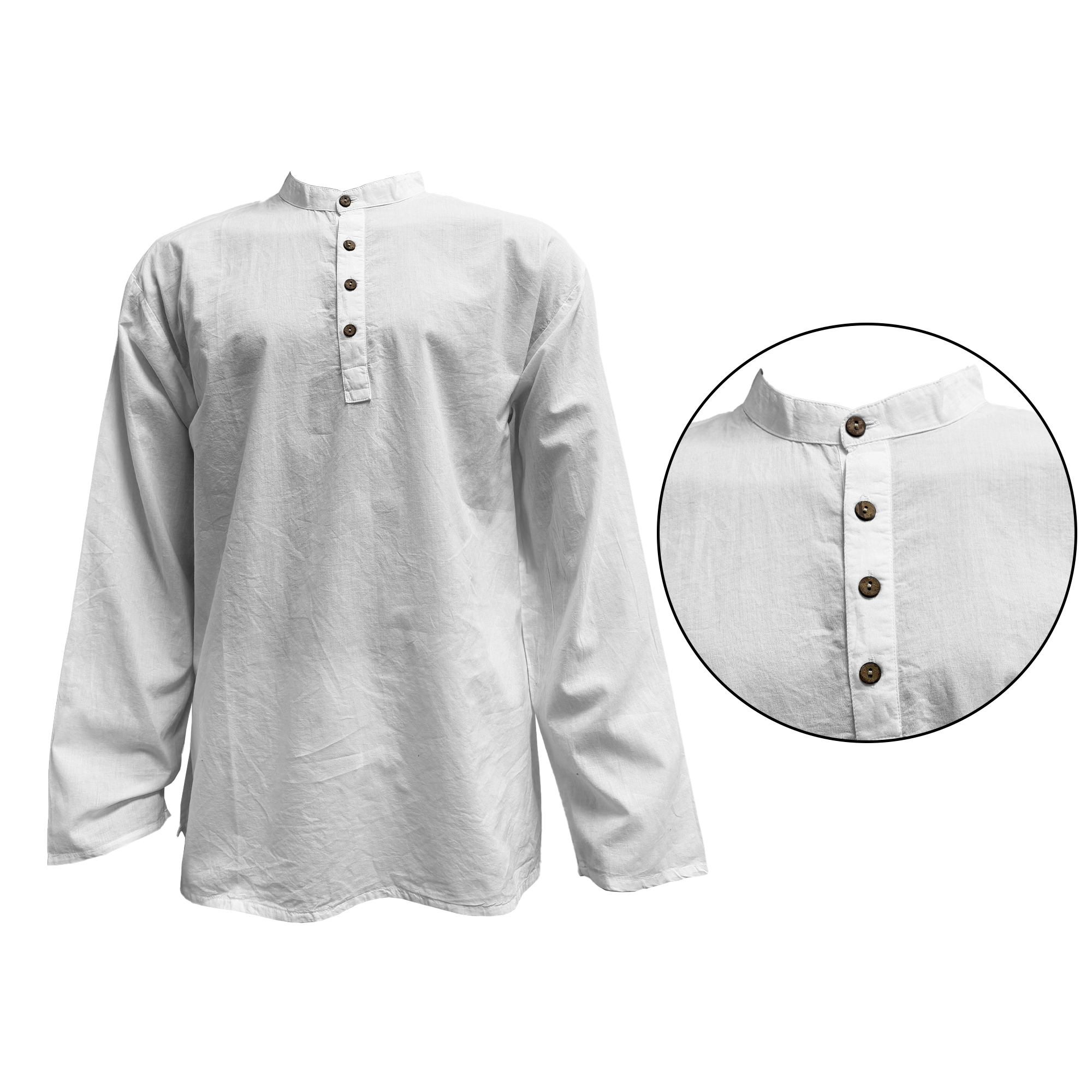 Men’s Yoga Indian Gauze Cotton White Kurta Shirt – Boho Long Sleeve Tunic with Mandarin Collar 🧘♂️🌿
