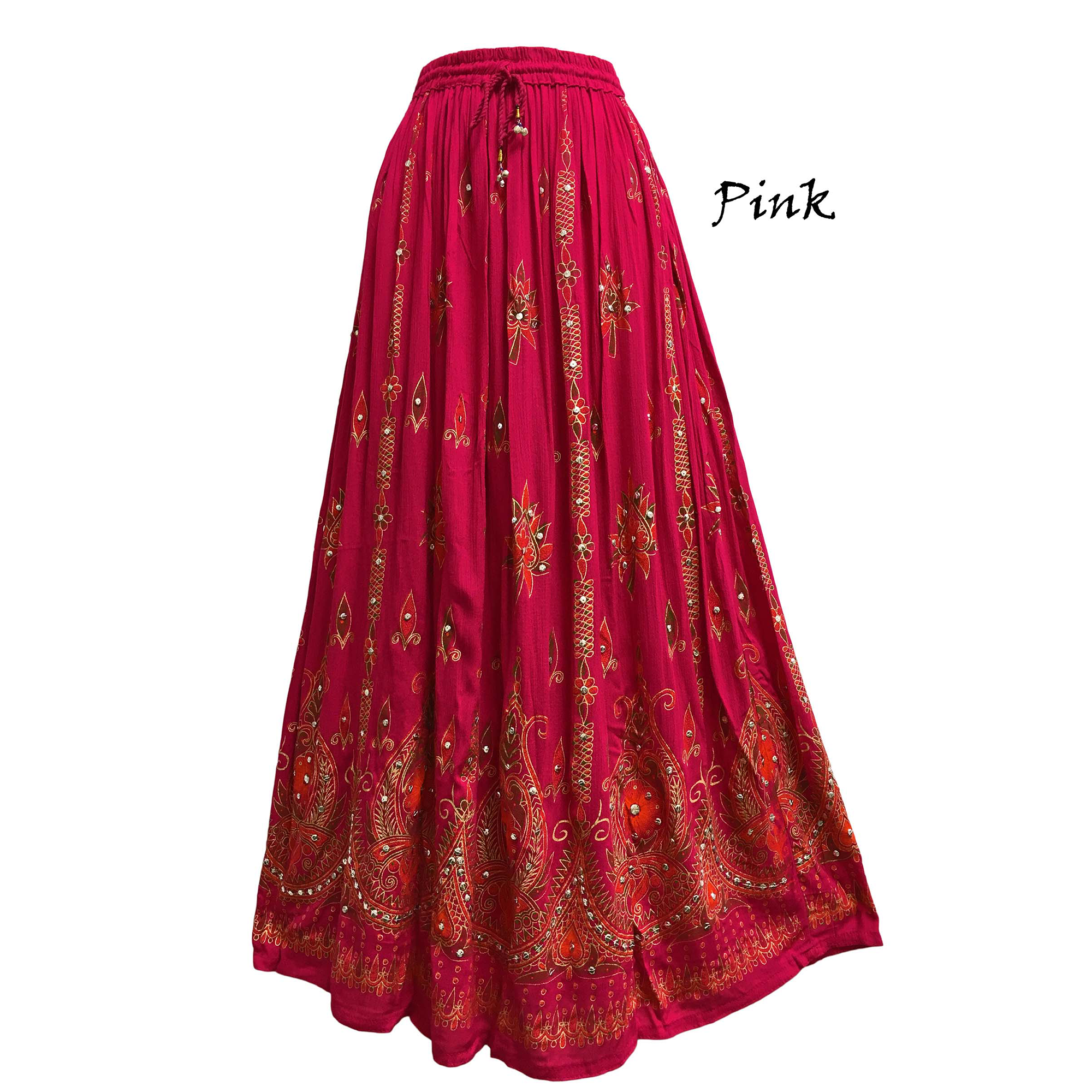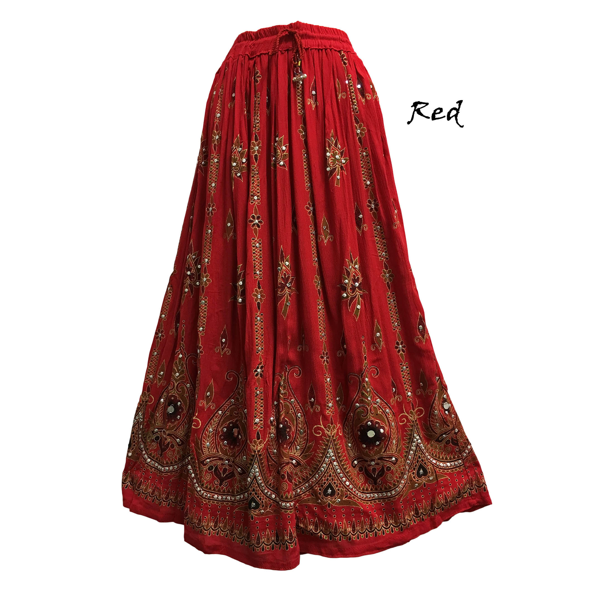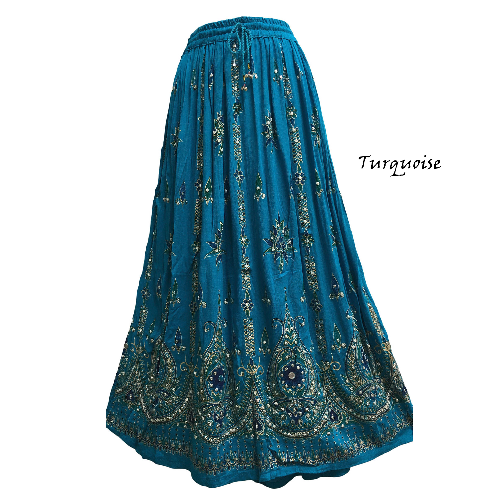 Women's boho Handmade Indian Sequin Crinkle Gypsy Long Broomstick Skirt