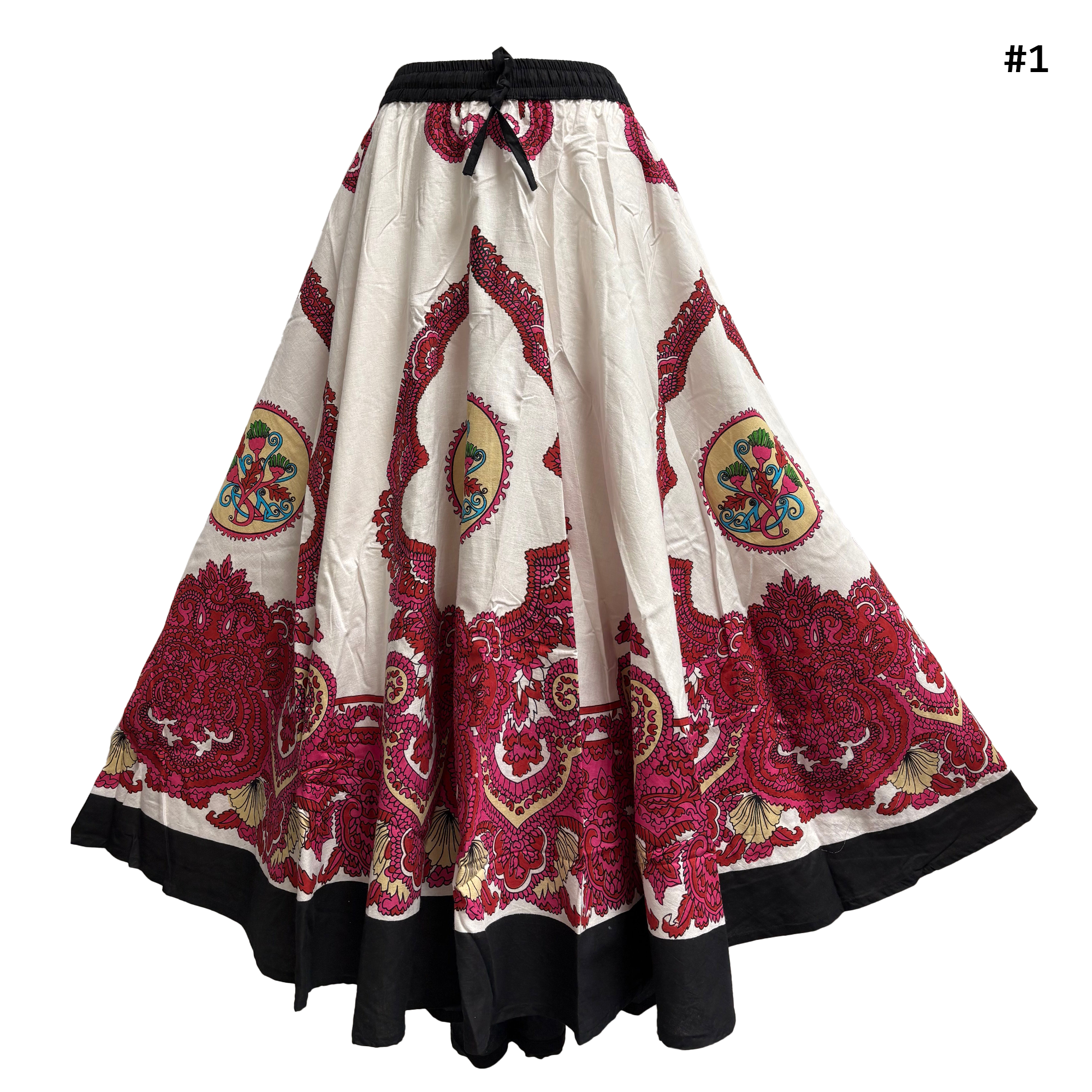 Featuring vibrant Indian ethnic prints, paisley, and florals, this boho-chic skirt brings bold color, movement, and personality to any outfit. The umbrella-cut shape, gathered pleats, and soft drape make it flattering on all body types, from petite to plus size.