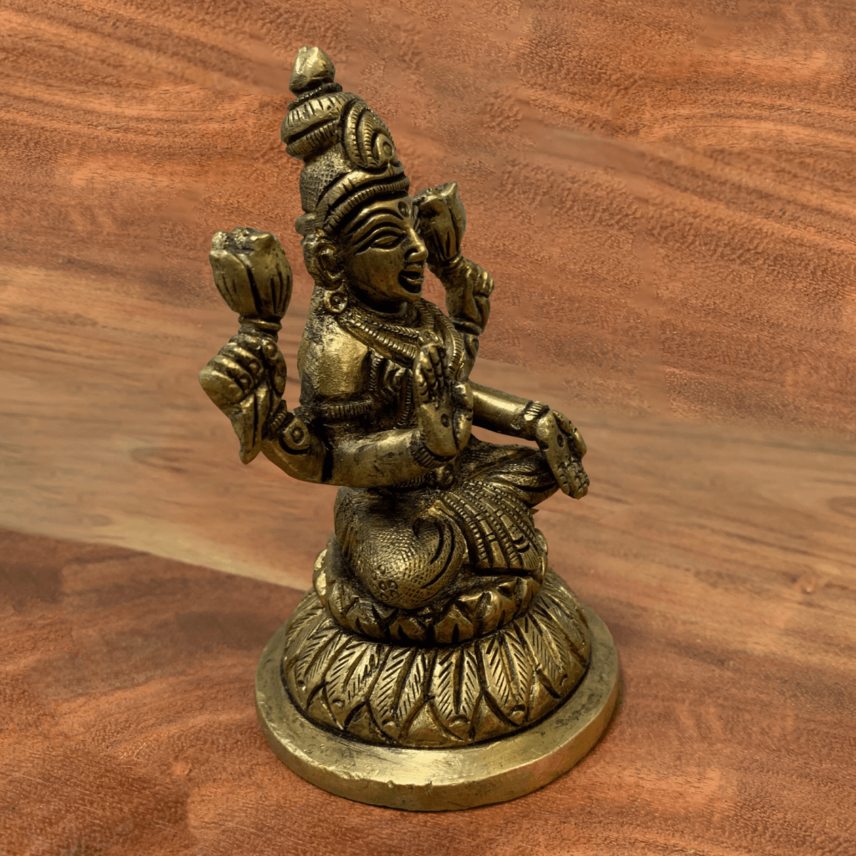 🌸 Vintage Brass Goddess Lakshmi Statue – Hindu Goddess of Wealth & Beauty 🌸
