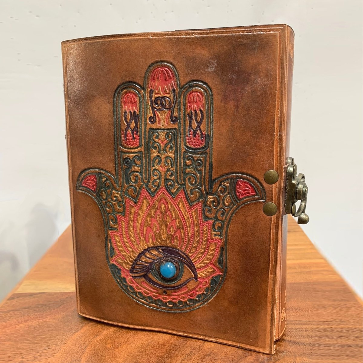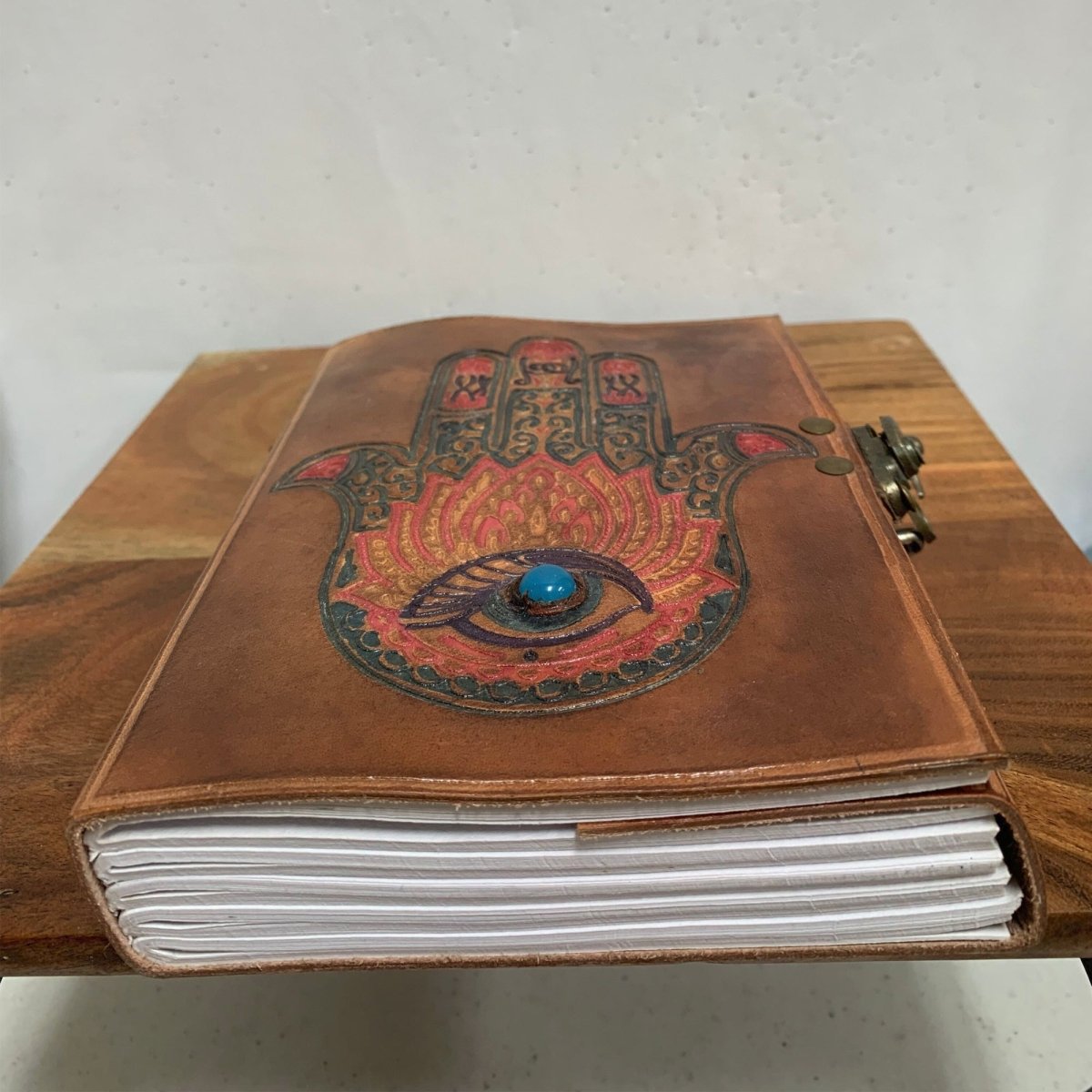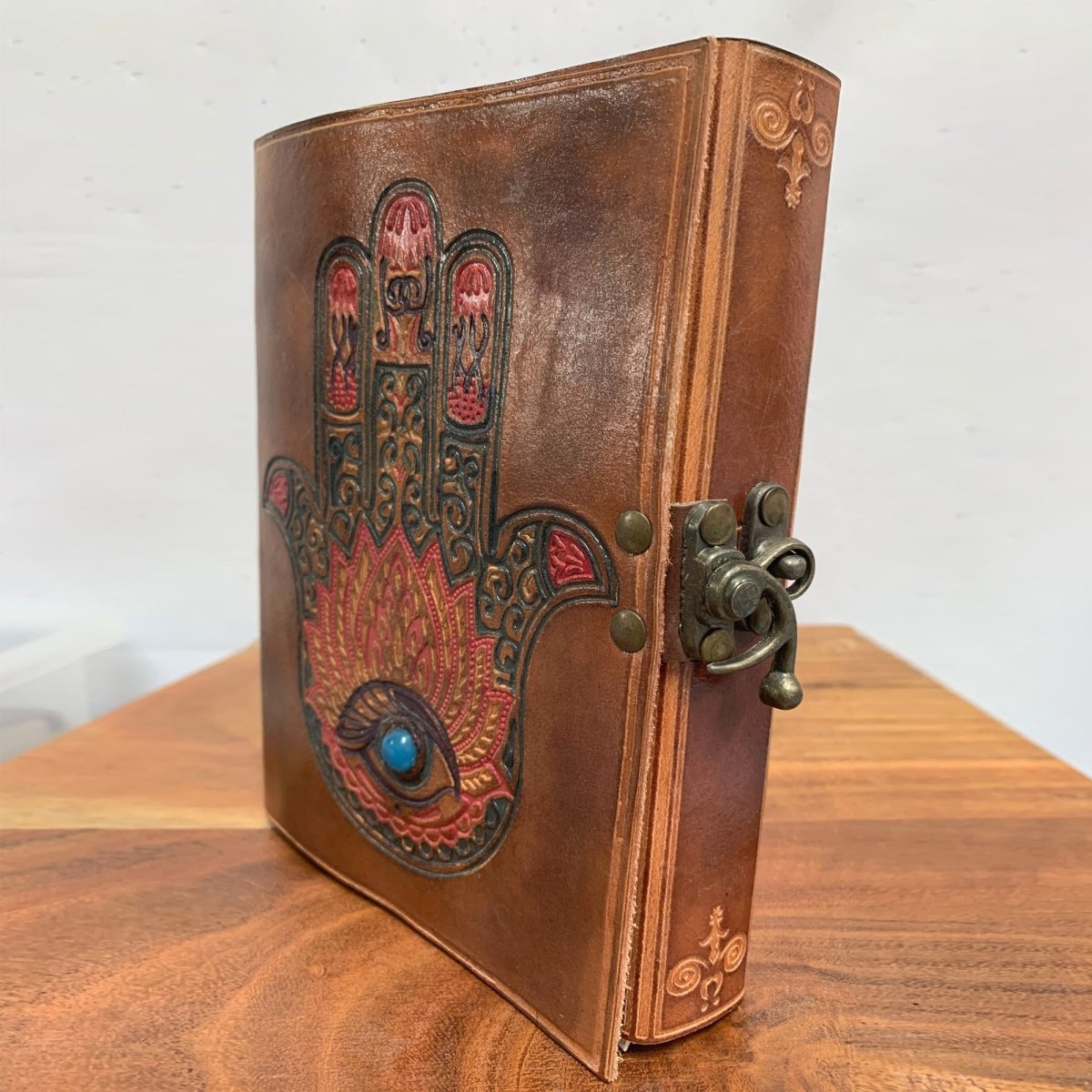 Boho Bohemian Eye of Horus Hamsa Egyptian Eye Leather Handmade Journal Diary Sketchbook Notebook Eco Friendly Lokta Paper
