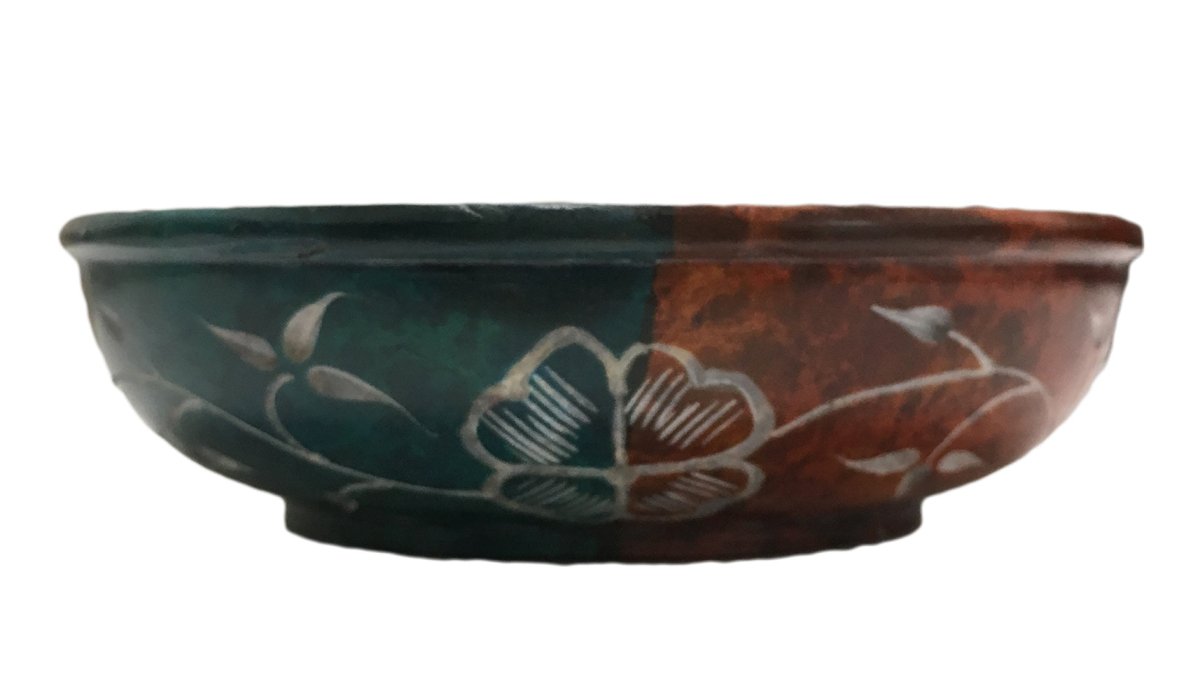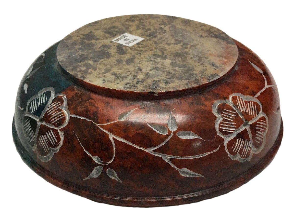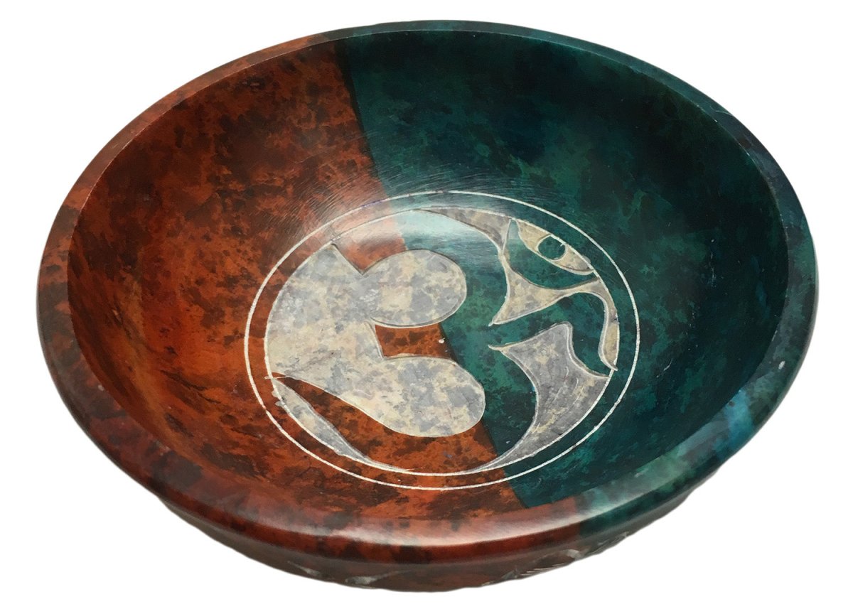 Hand Sculpted Soapstone Painted Floral Tie-Dye Yoga Meditation Altar Decorative Bowl (Orange & Teal Om)