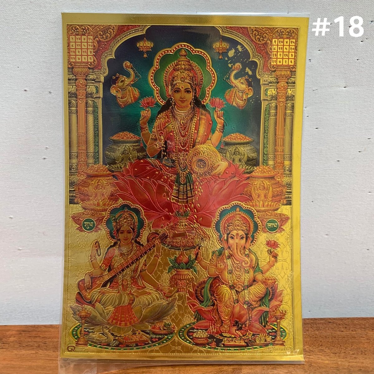 Lakshmi Ganesh & Sarasvati Gold Foil Decorative Picture Poster #18 (5" x 7")