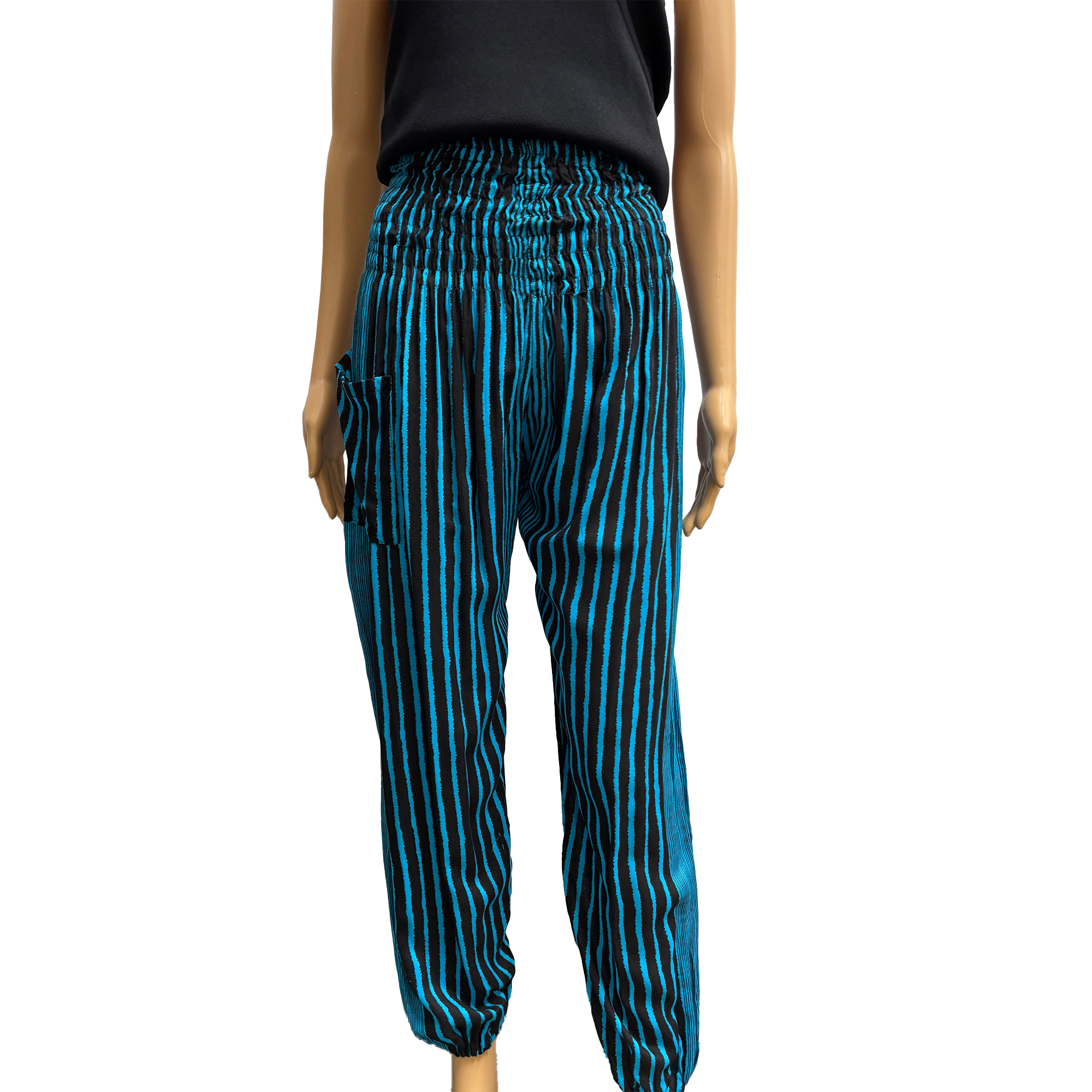 Flow freely in these Bohemian Ethnic Striped Harem Pants, designed for comfort, movement, and style. Made from 100% lightweight, silky-soft cotton, they feature a vibrant striped ethnic print that brings color and energy to your wardrobe.