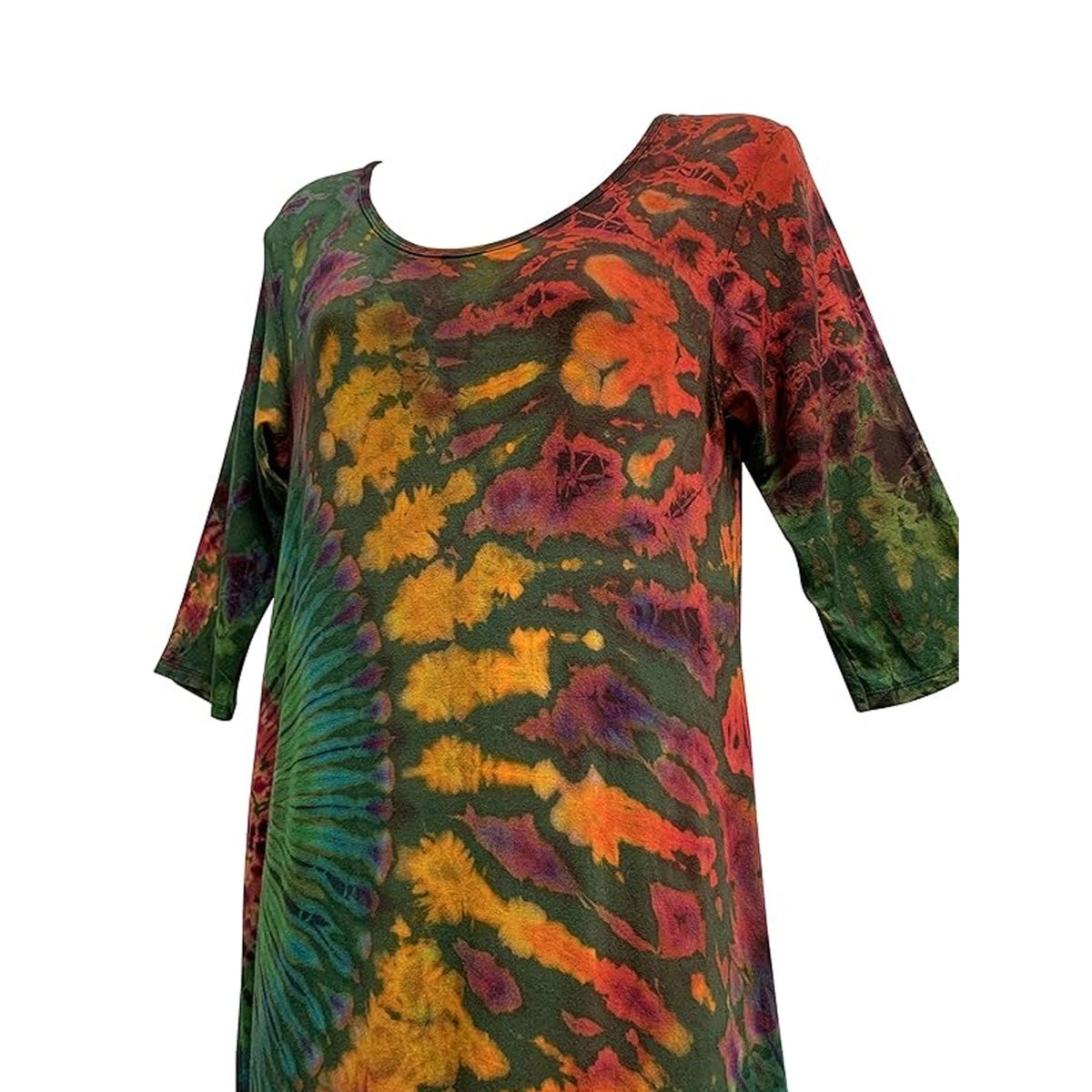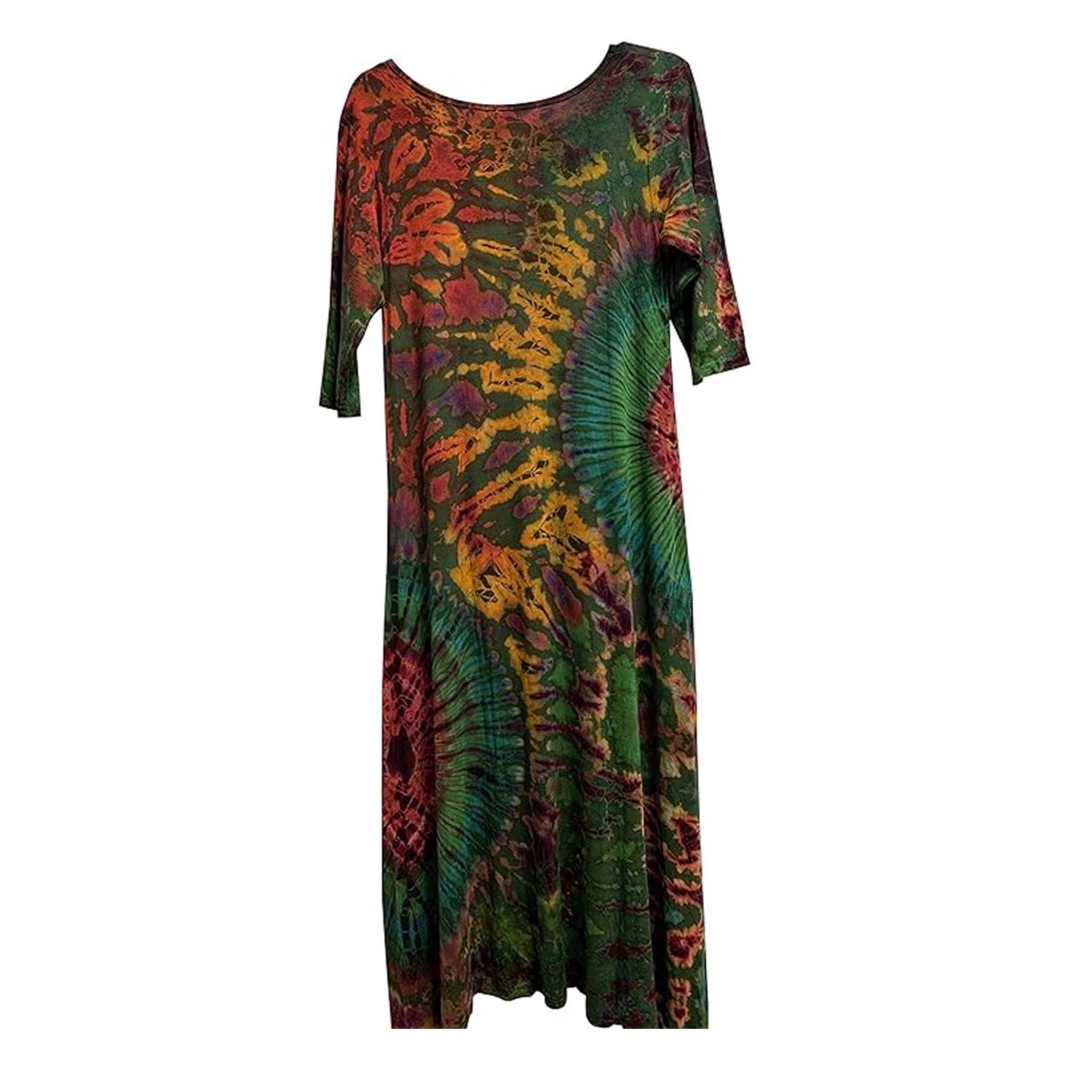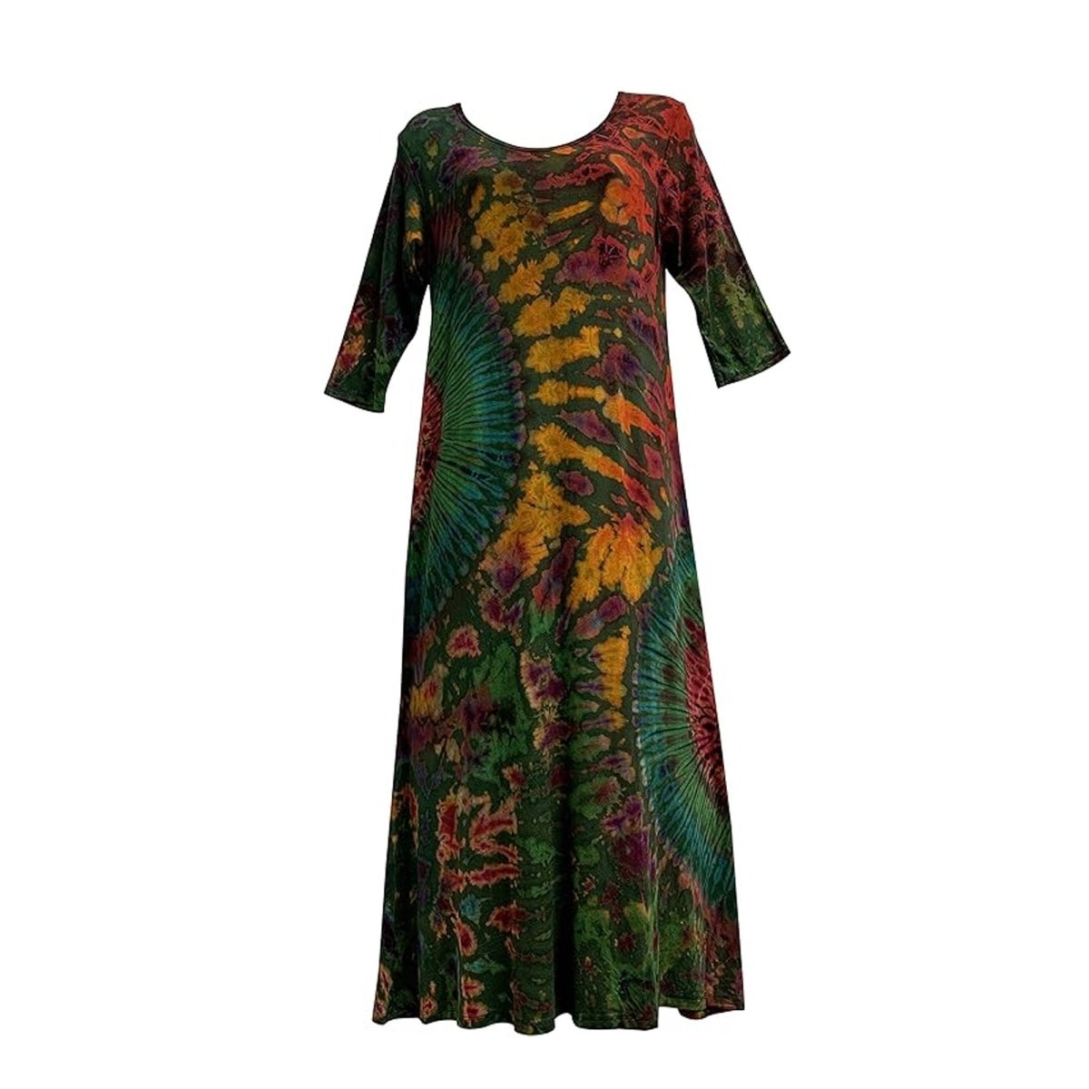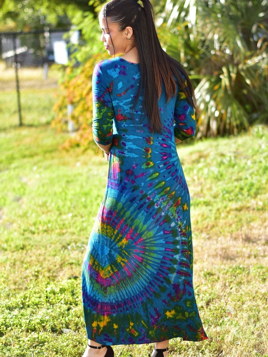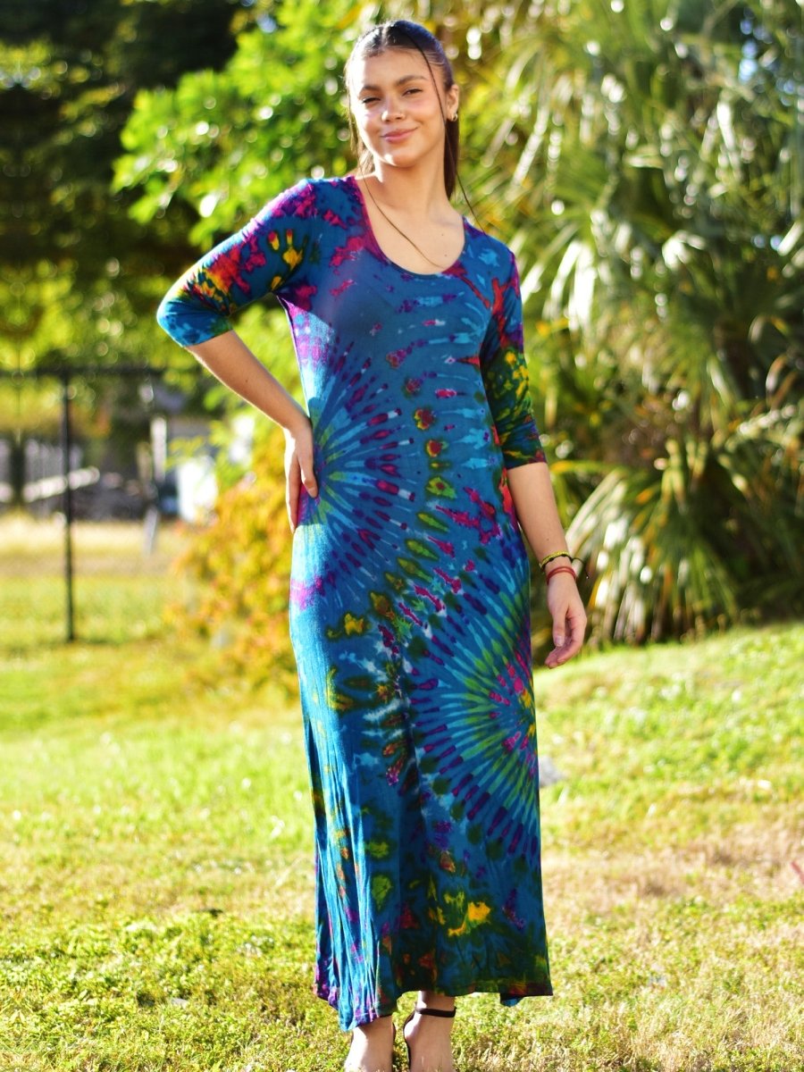 Bohemian Hippie Spandex Tie-Dye Stretchable Elbow Sleeve Maxi Dress