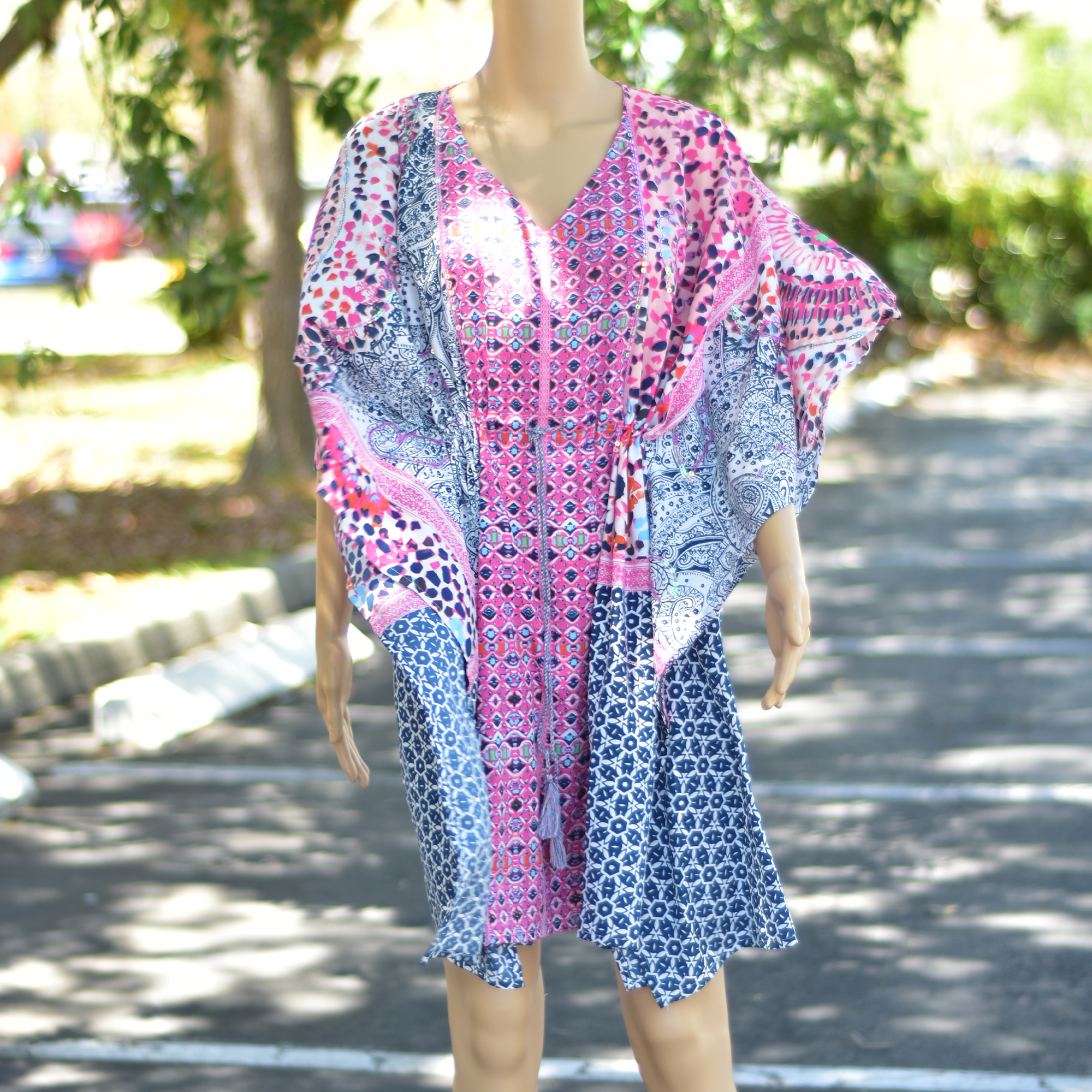 • Caftan Style mini dress can be used as tunic with leggins or beach swim cover up or as lounge dress
