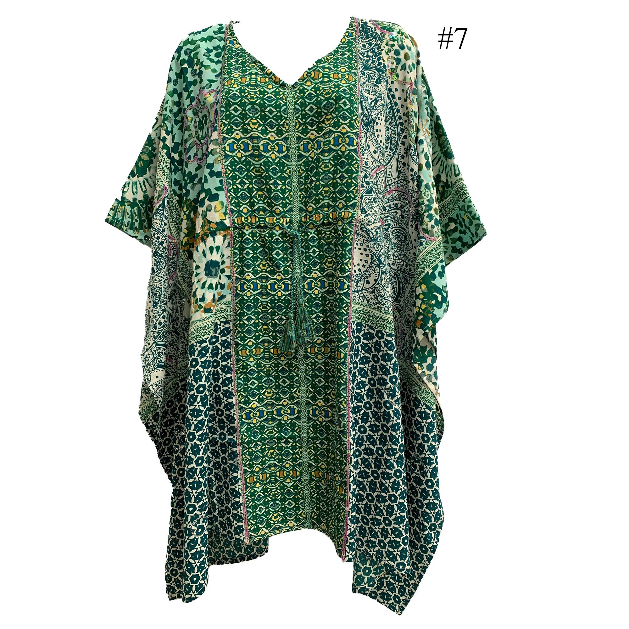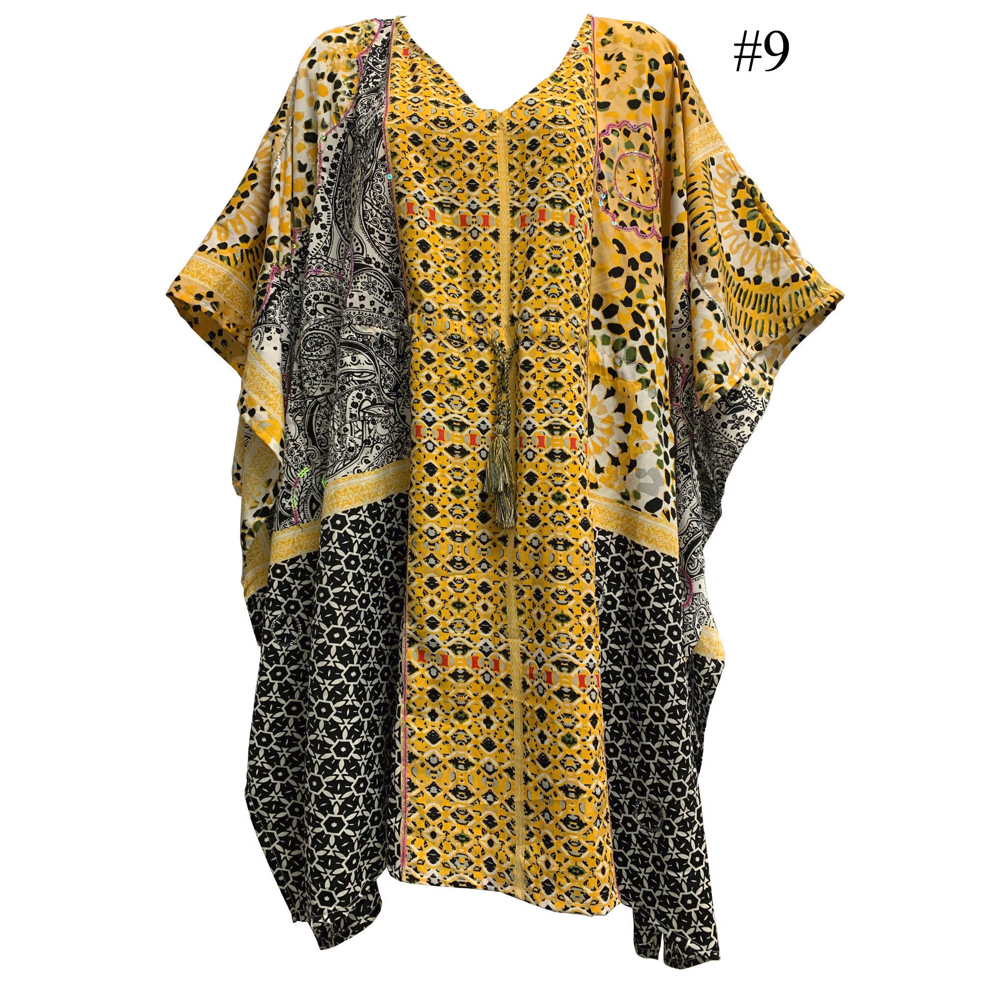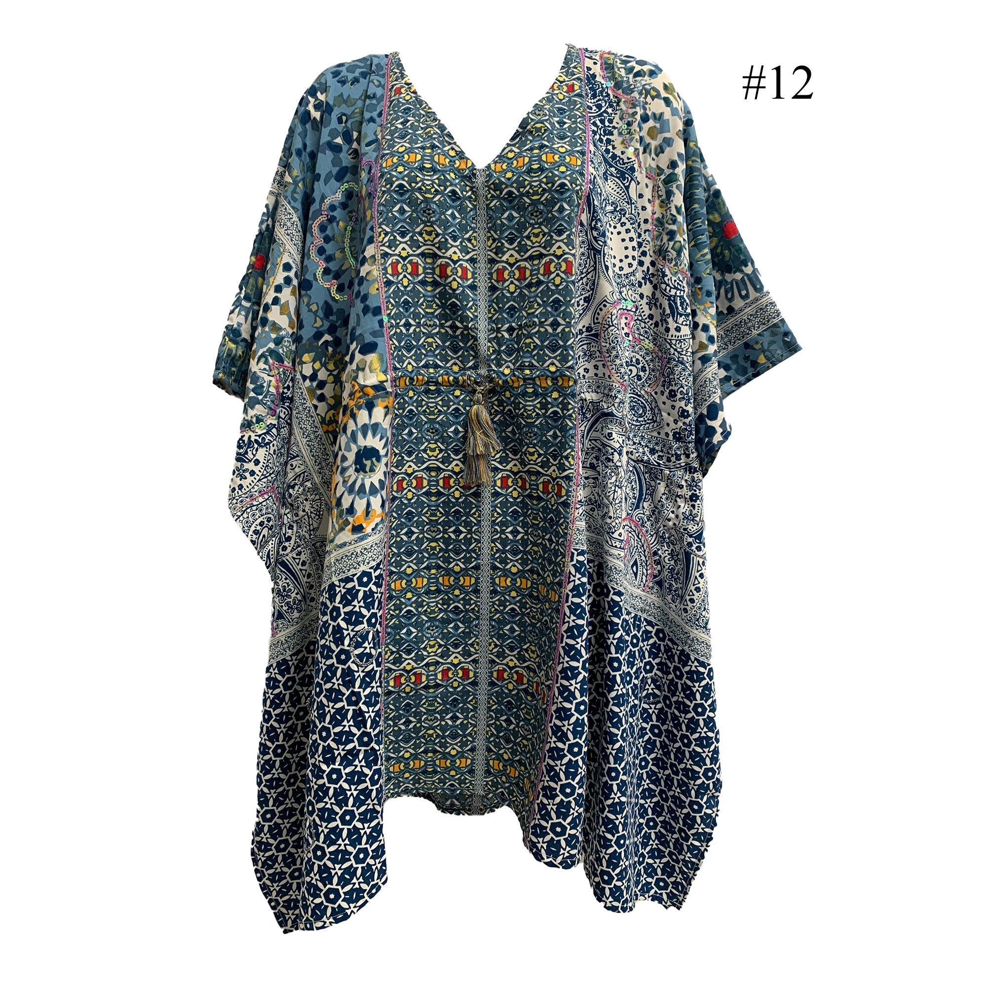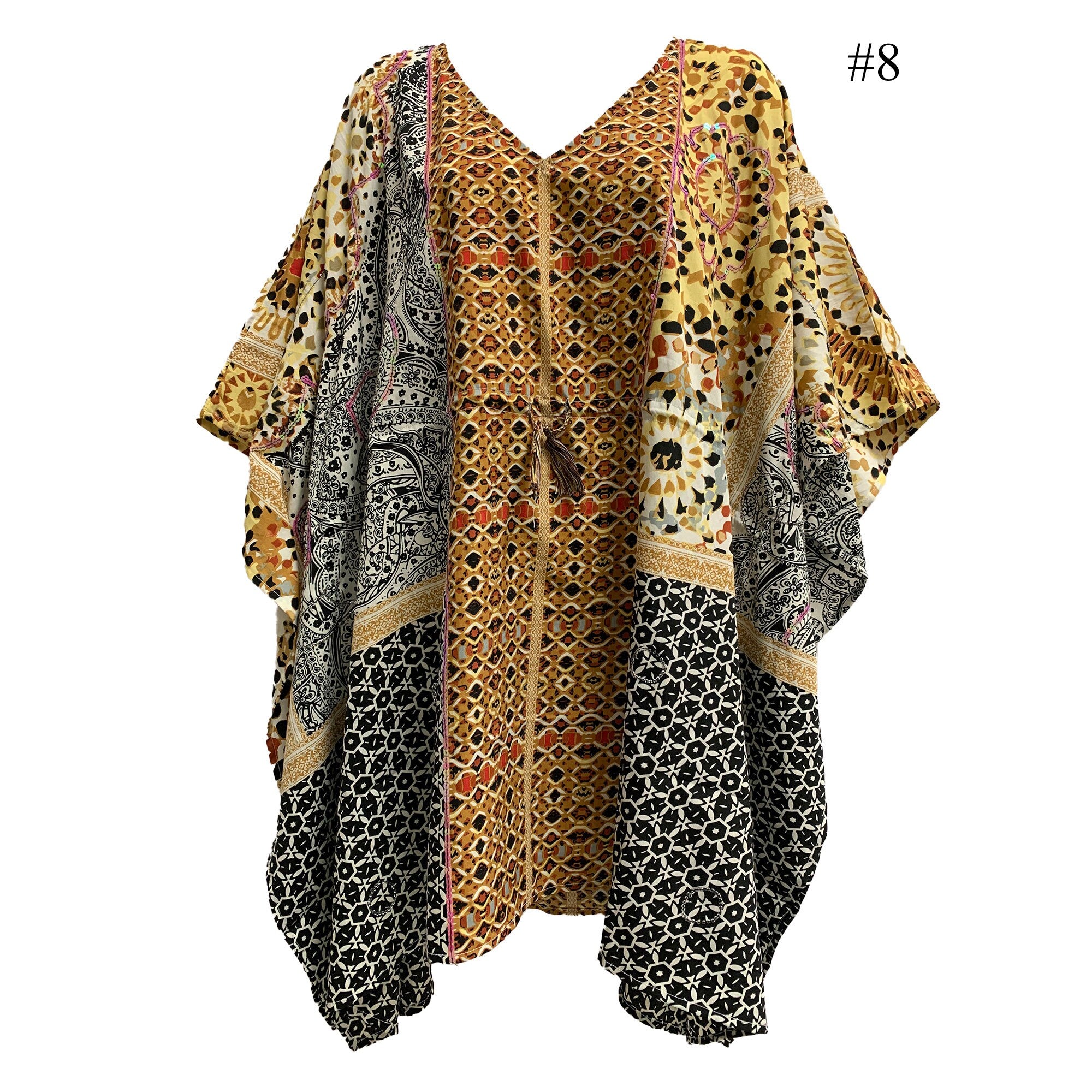 Boho Sequined Ethnic Print Short Caftan Beach Loose Fit Tunic Soft Silky Dress Shila Plus size Dress