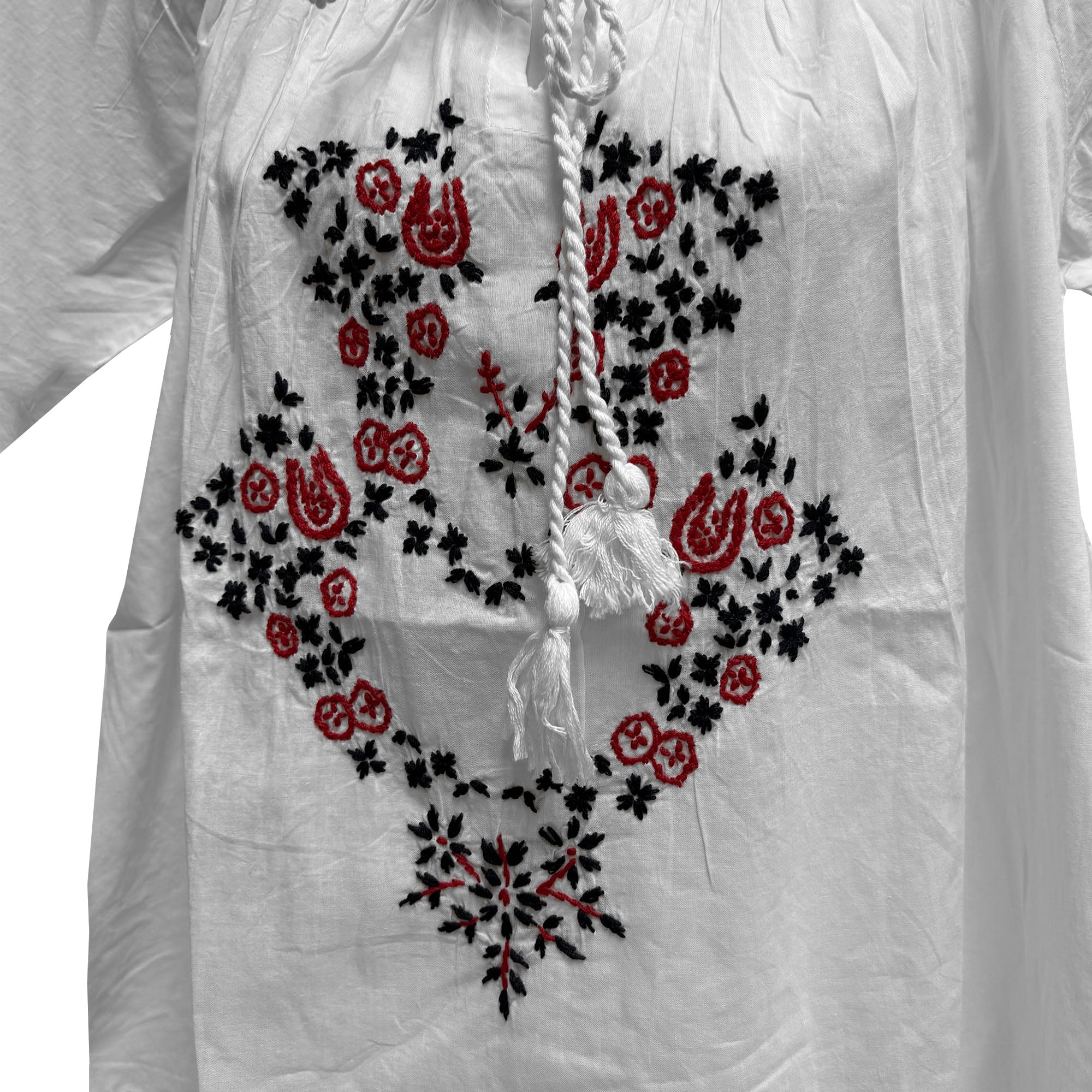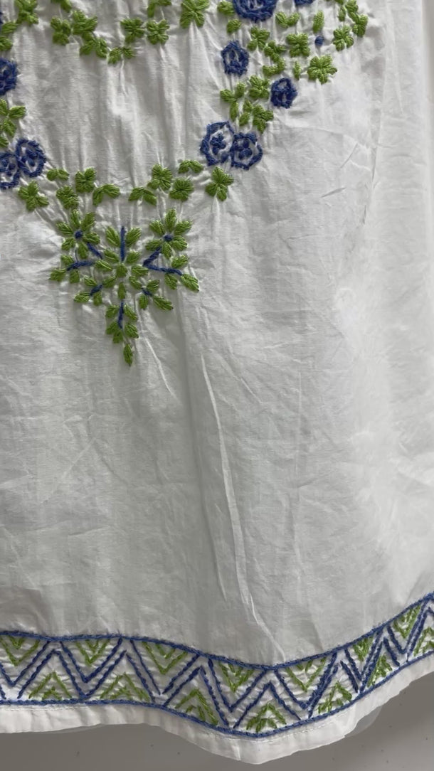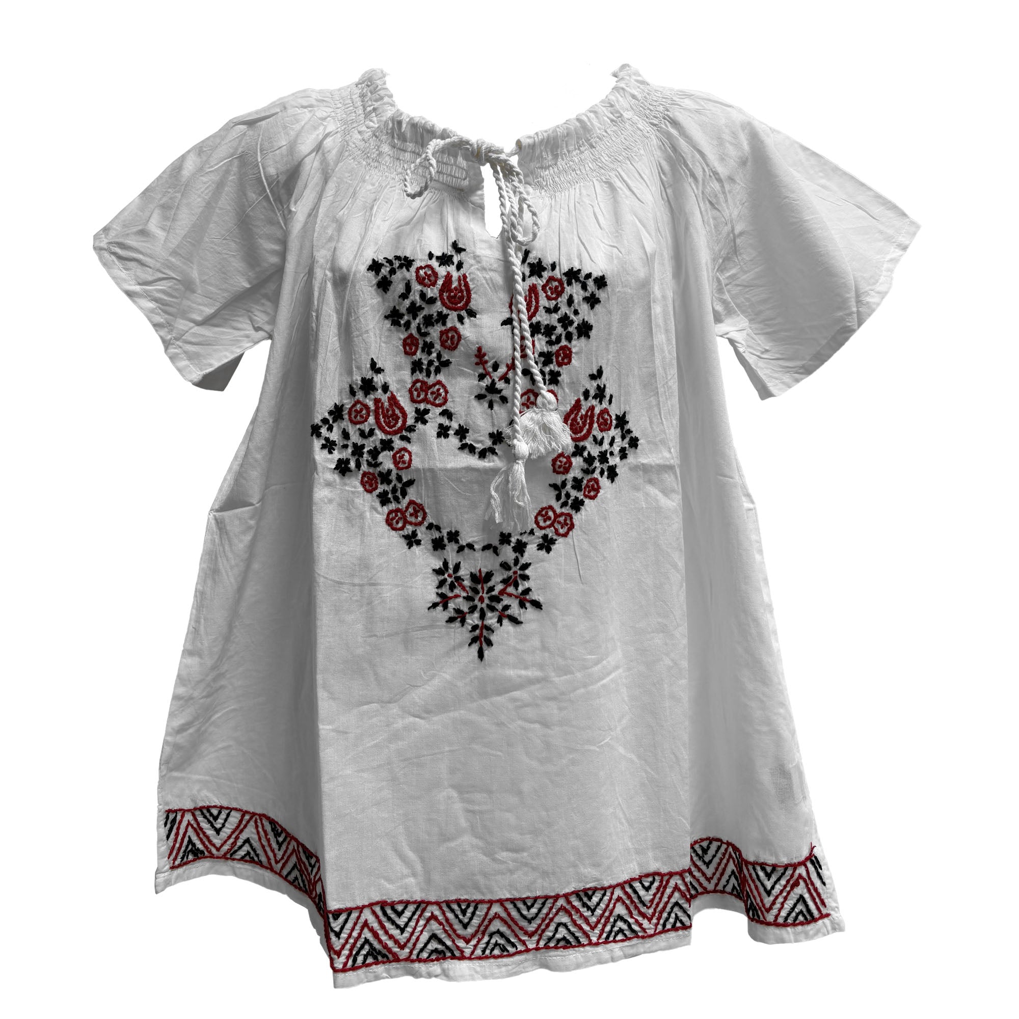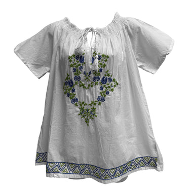 Hand Embroidered White Pure Cotton Short Sleeve Peasant Blouse Top Plus Size Cotton Blouse