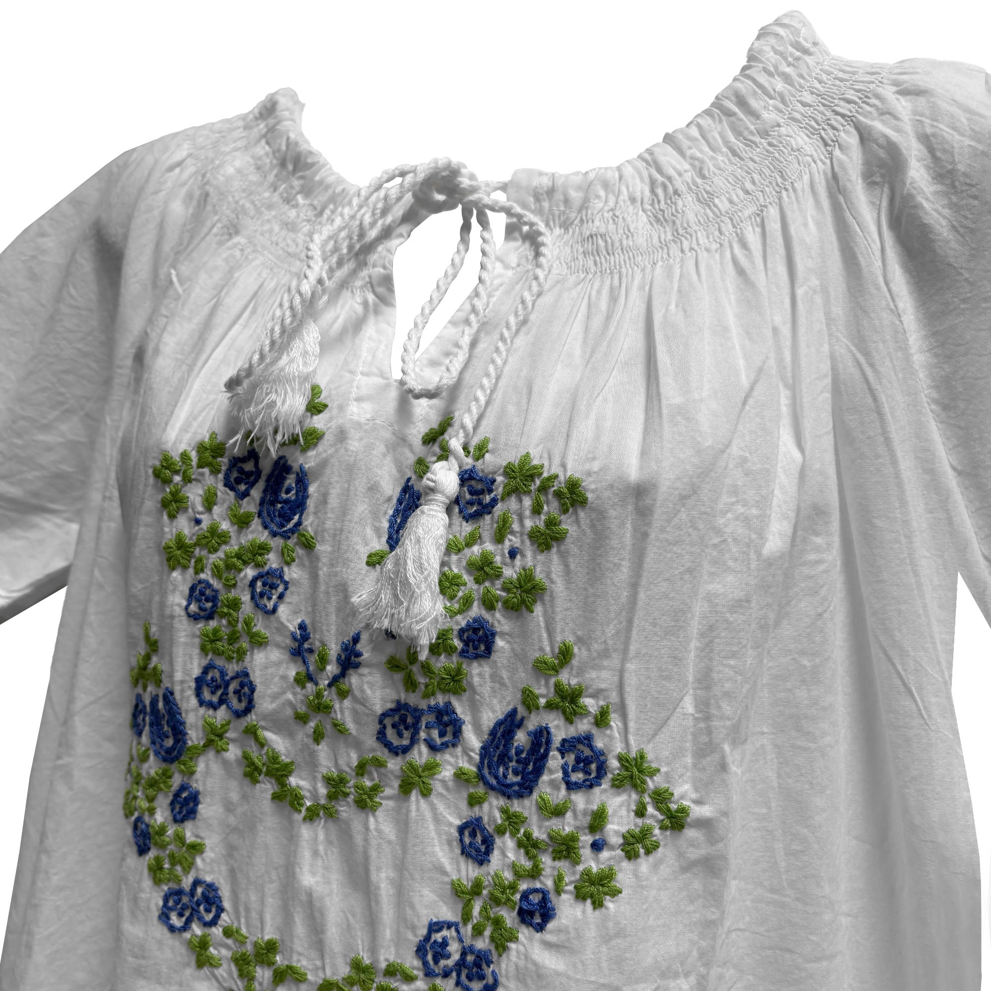 Soft, airy, and beautifully detailed, this hand-embroidered peasant blouse is a timeless boho staple. Made from premium Indian 100% gauze cotton, it features classic paisley hand embroidery and a relaxed silhouette that feels light and breathable all day long.