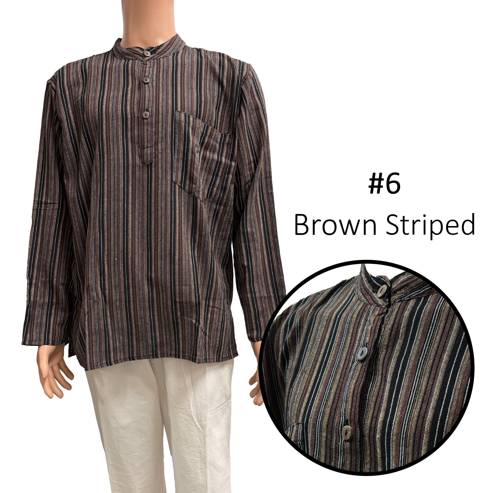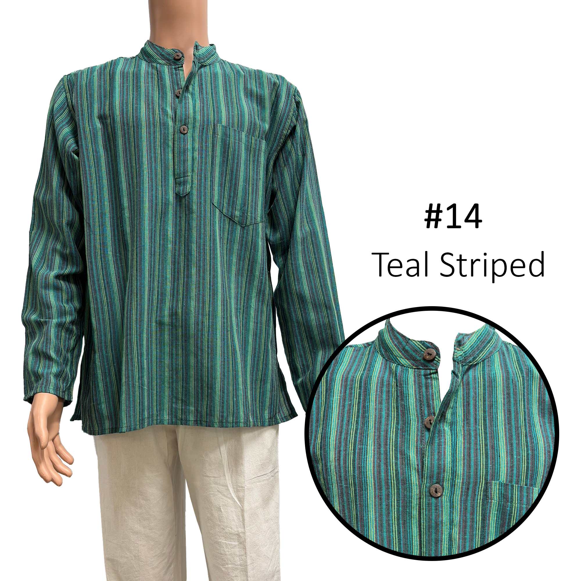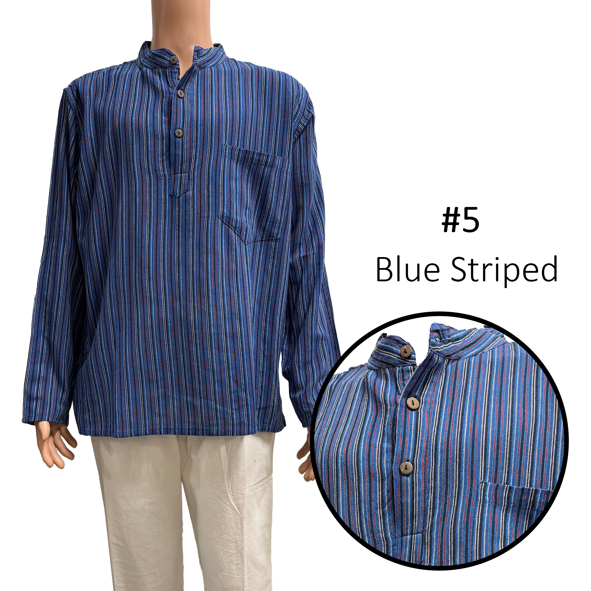Men Bohemian Indian Cotton Sixties Long Sleeve Tunic Shirt Kurta