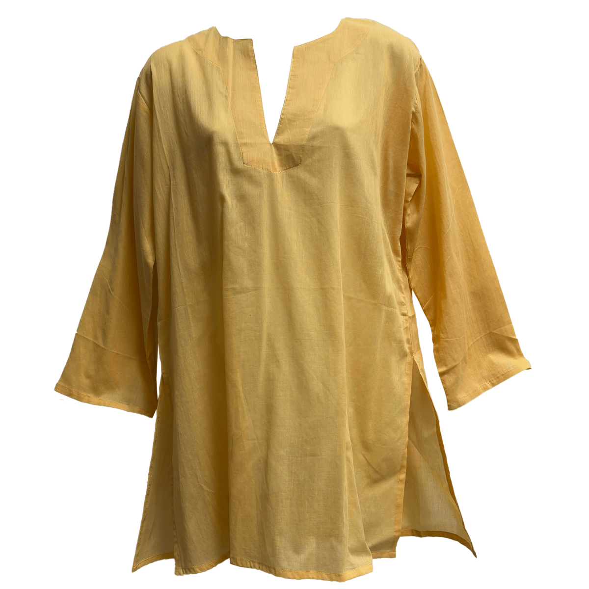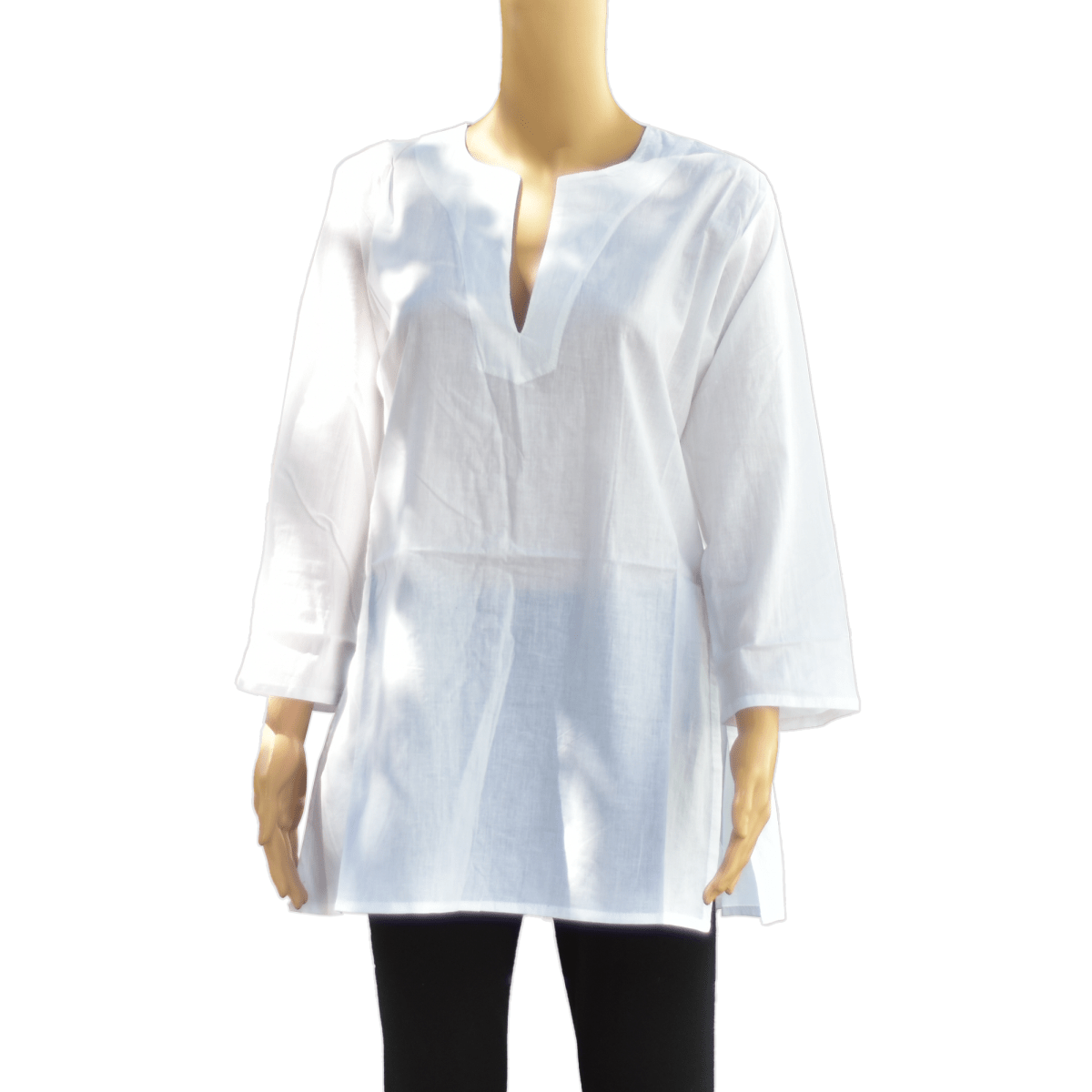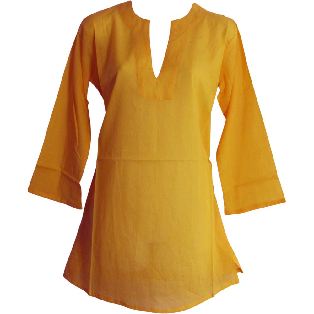 Stay cool, comfortable, and effortlessly stylish in this Pure Cotton Tunic Blouse. Inspired by classic Indian and 1960s bohemian style, this solid-color blouse is made from lightweight, breathable cotton that feels soft against the skin.
