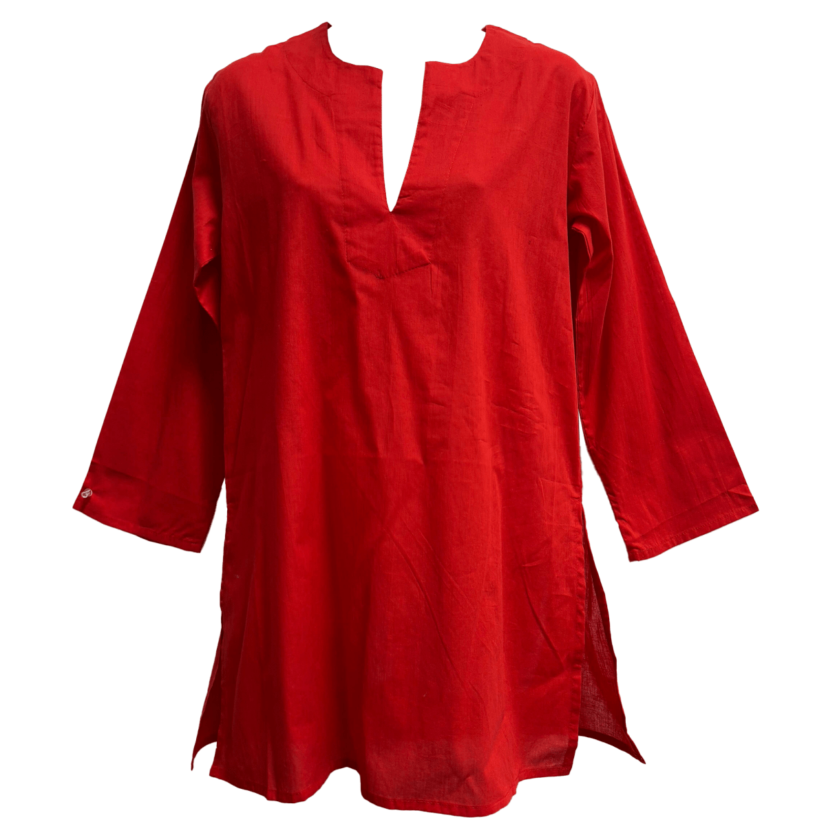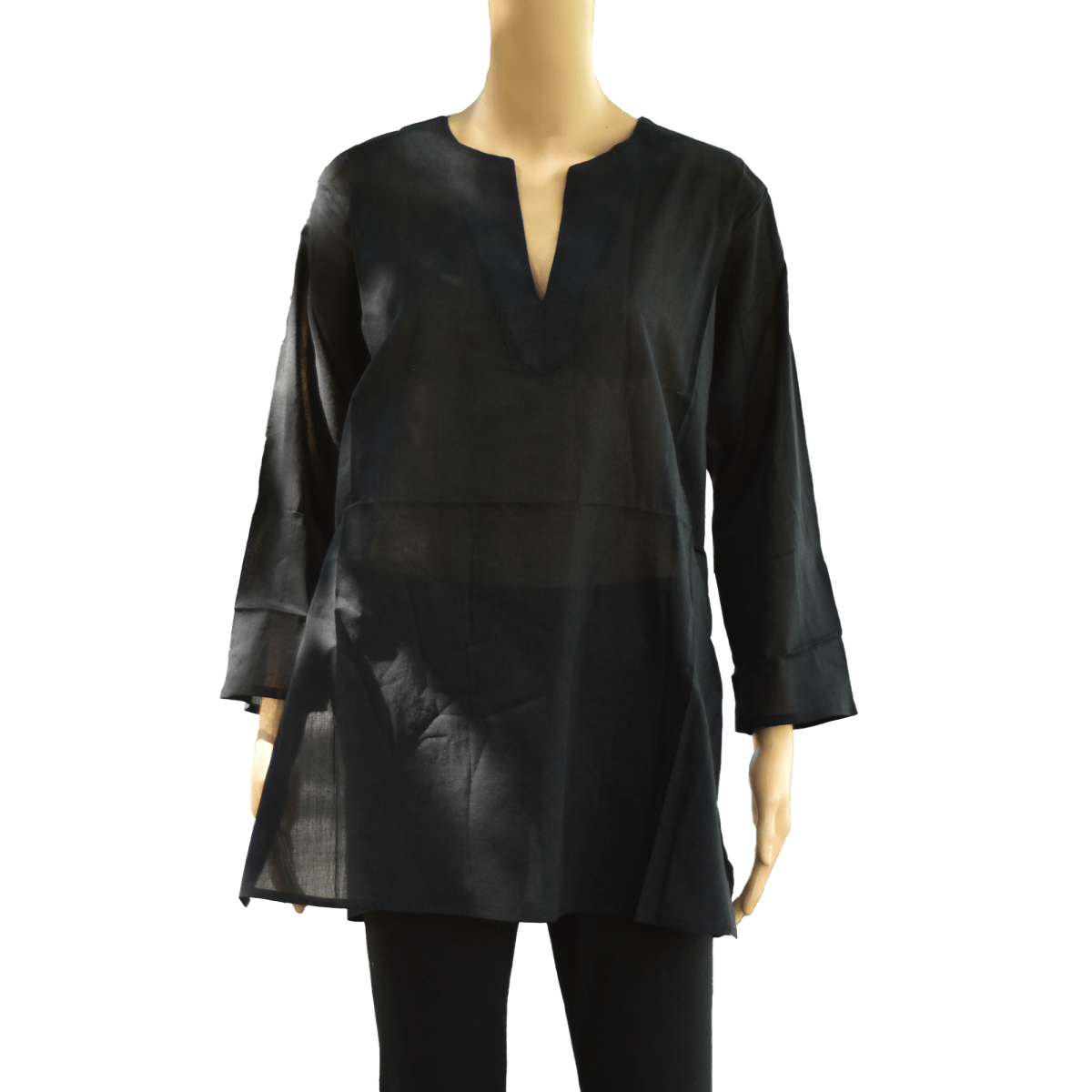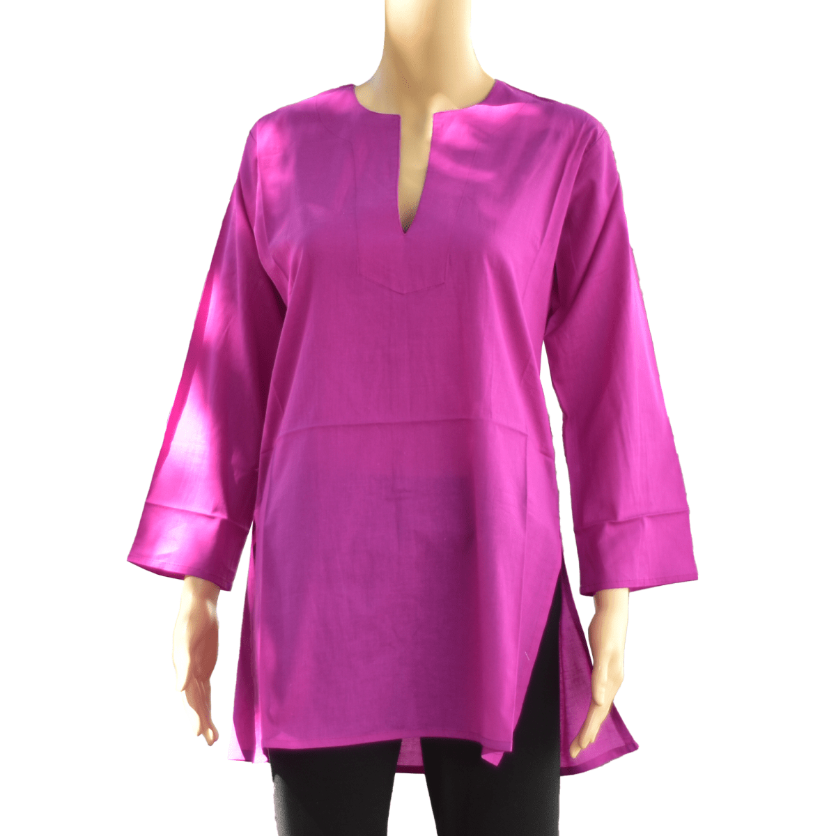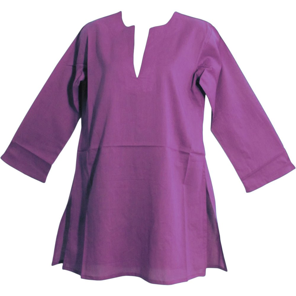 Stay cool, comfortable, and effortlessly stylish in this Pure Cotton Tunic Blouse. Inspired by classic Indian and 1960s bohemian style, this solid-color blouse is made from lightweight, breathable cotton that feels soft against the skin.