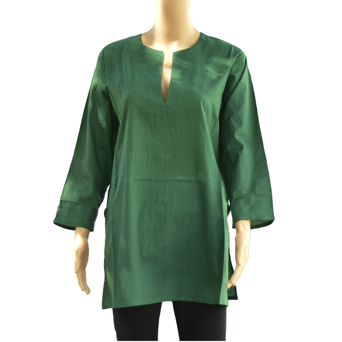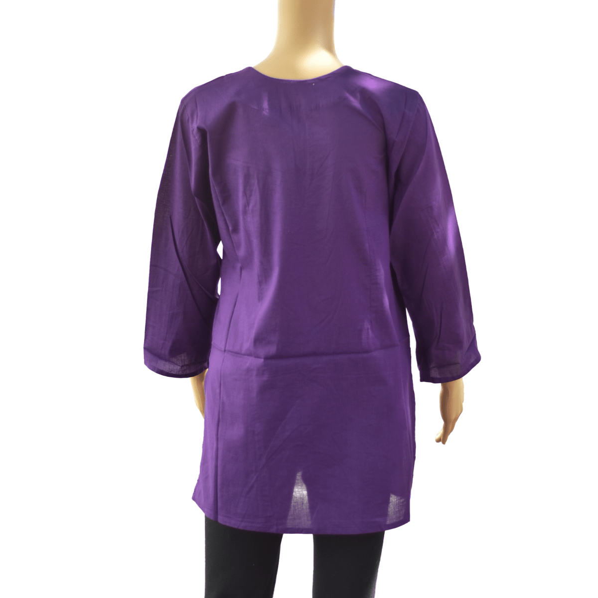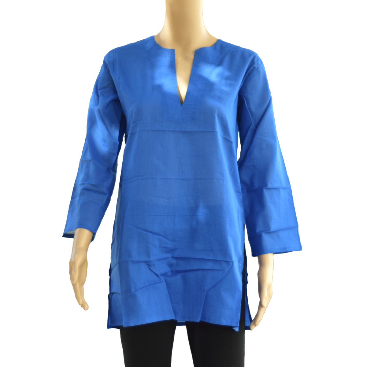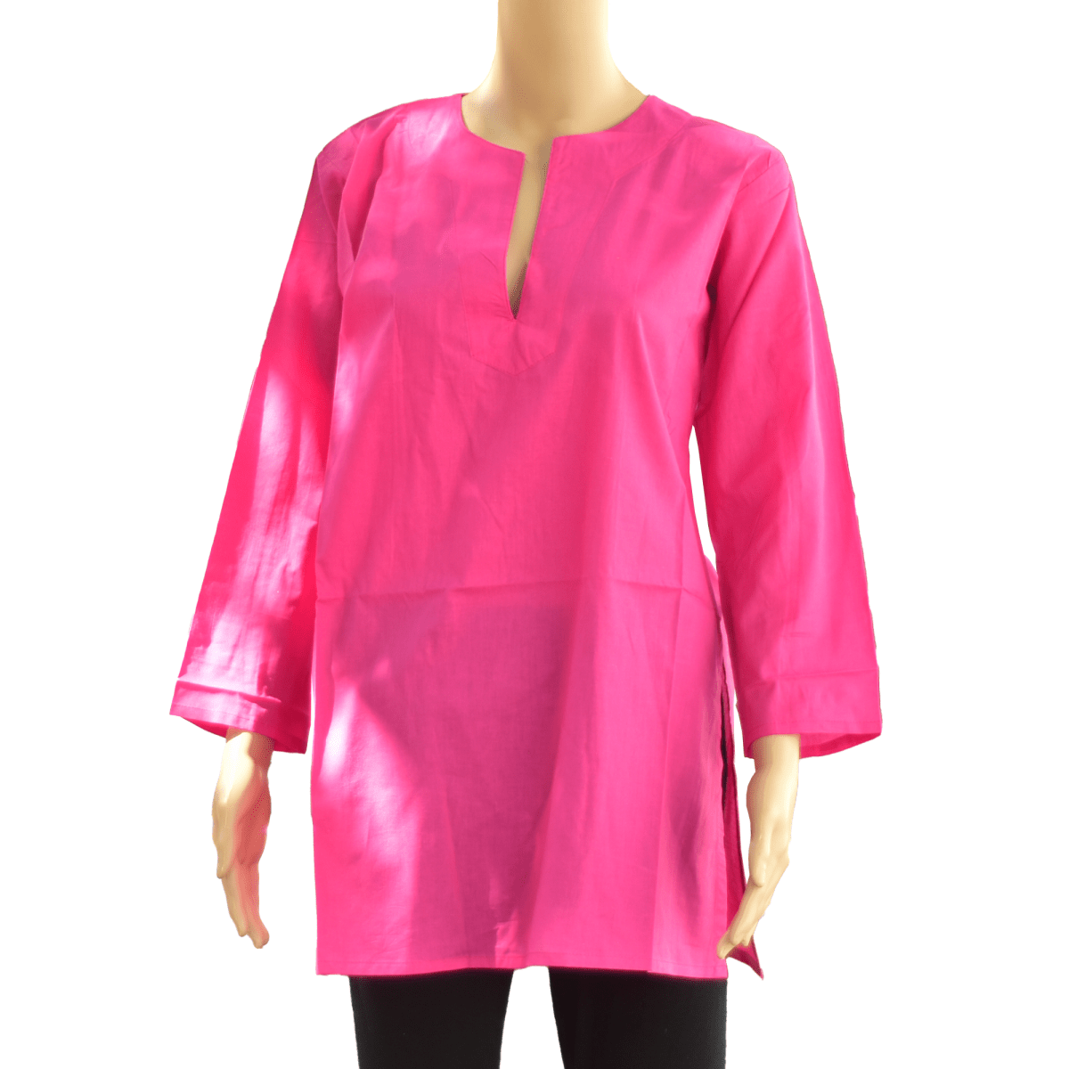 Stay cool, comfortable, and effortlessly stylish in this Pure Cotton Tunic Blouse. Inspired by classic Indian and 1960s bohemian style, this solid-color blouse is made from lightweight, breathable cotton that feels soft against the skin.
