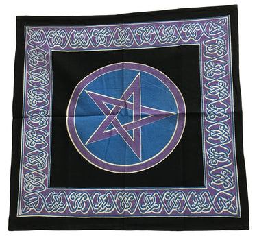 Purple, Black, Blue 22x24 Pentacle Pentagram Block Printing Cotton Altar Cloth