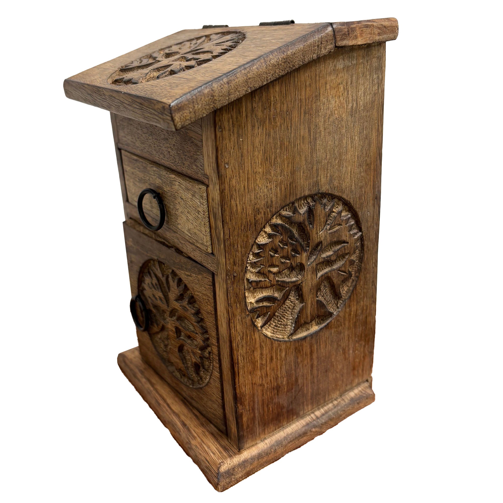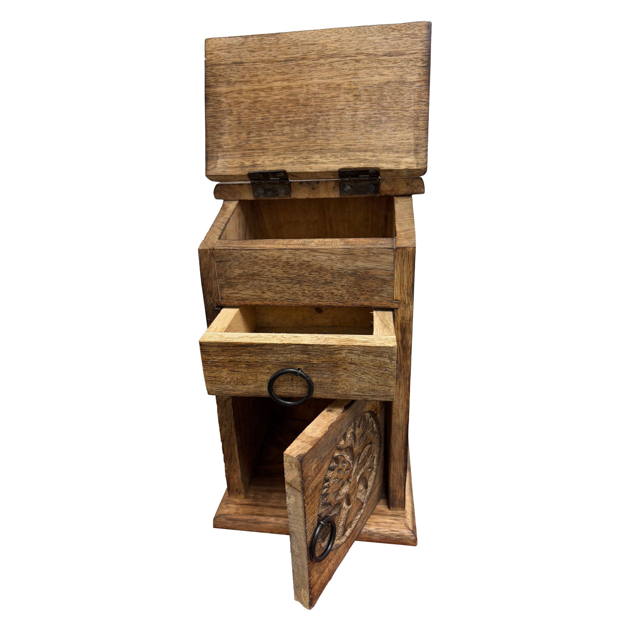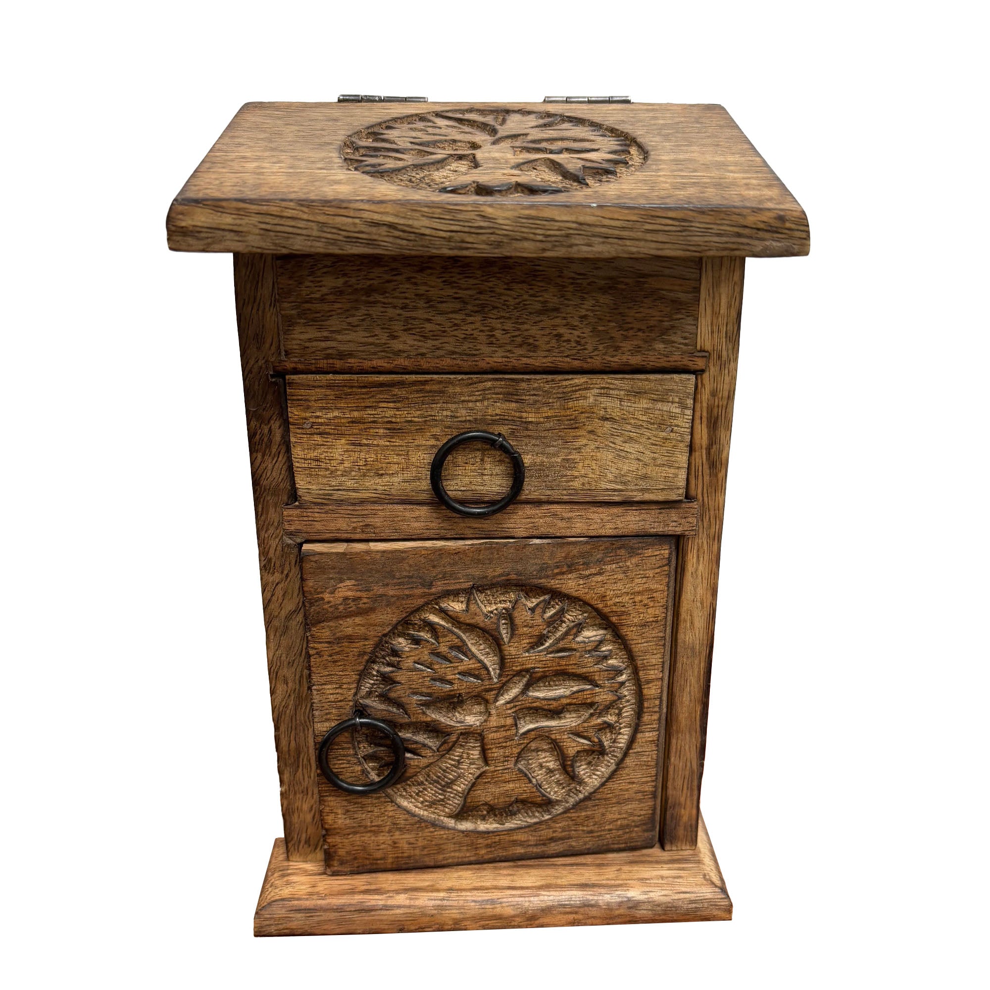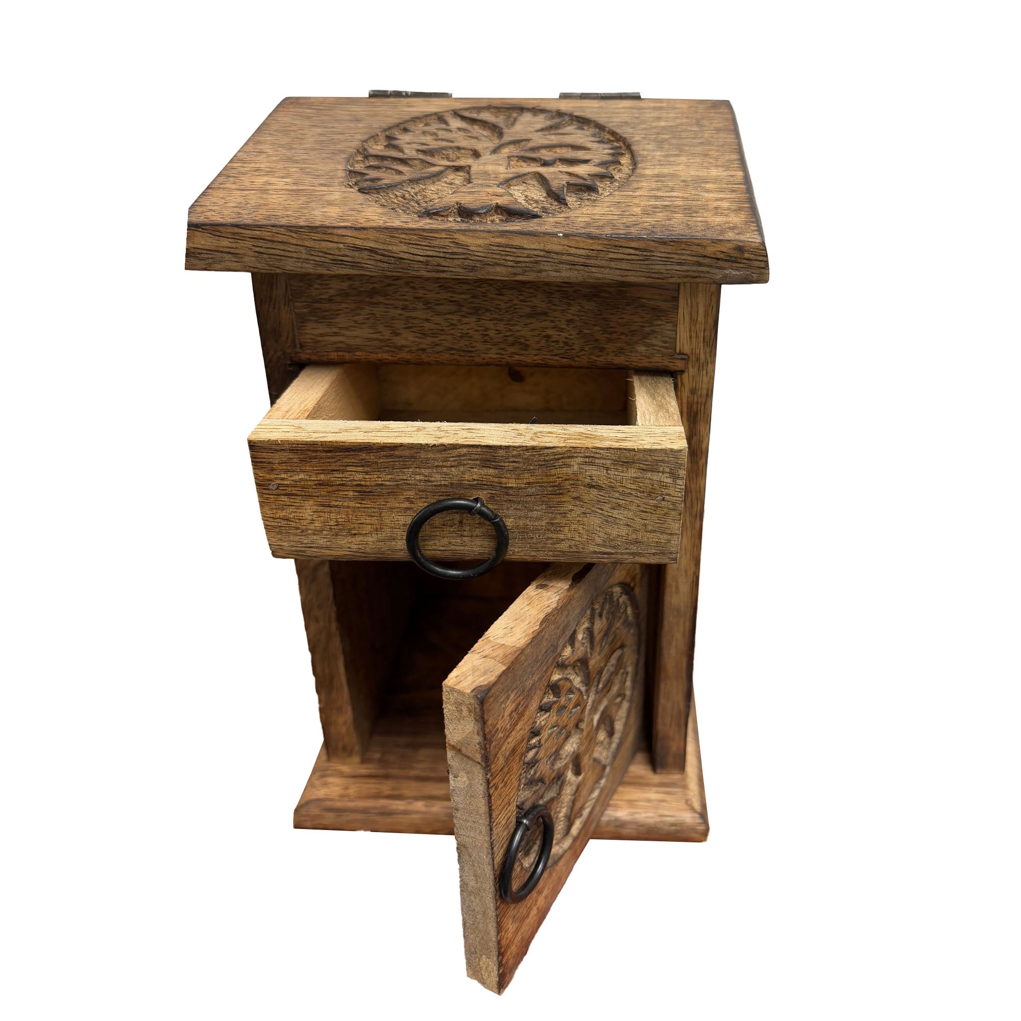 Bring harmony, beauty, and timeless symbolism into your sacred space with this Handcrafted Wooden “Tree of Life” Storage Almirah Box. 🌿 Made from premium quality wood, this compact storage cupboard is both functional and deeply meaningful — perfect for organizing herbs, crystals, ritual tools, altar essentials, or small treasures. ✨