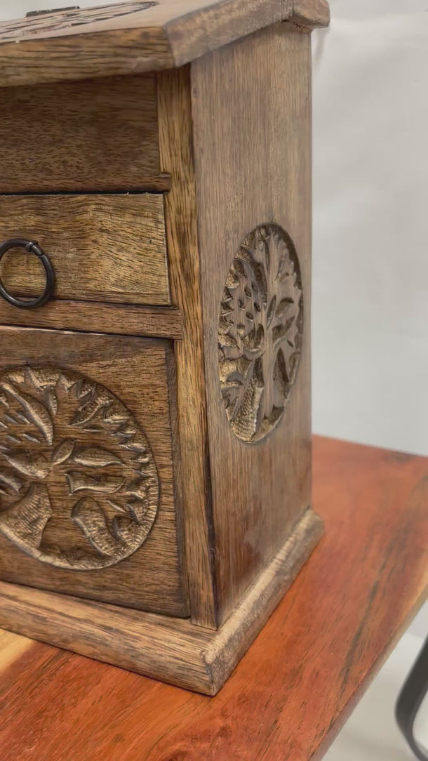 🌳 Handcrafted Tree of Life Wooden Storage Almirah Box | Herb & Crystal Chest | Spiritual Home Decor 🌙